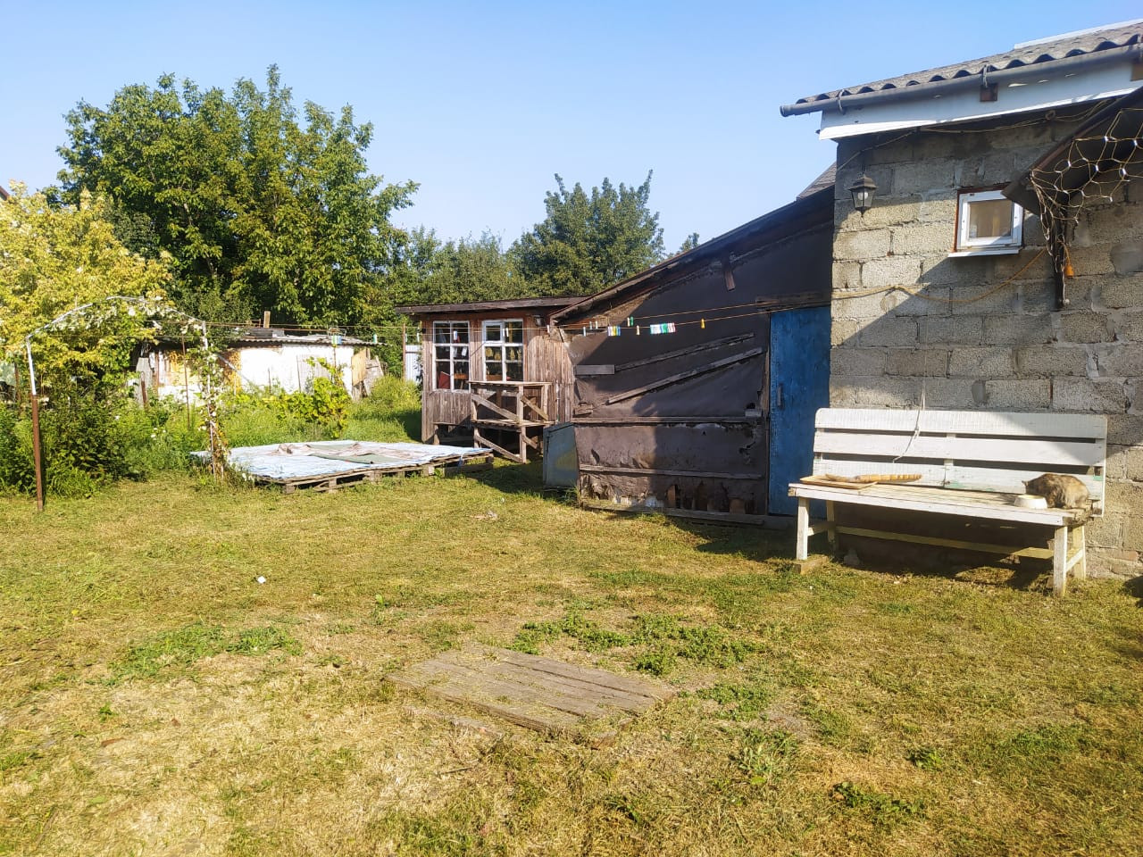 В доме 3 отдельных комнаты, кухня, техника, вся мебель остается. Свет, вода есть, газ на улицу уже заведен, участок правильной формы 4 сот. с забором и заездом для машины. На участке плодовые деревья, и хоз. постройка, а так же подиум для каркасного бассейна.