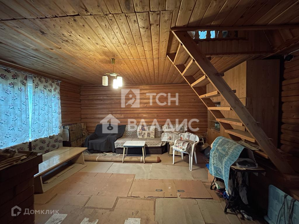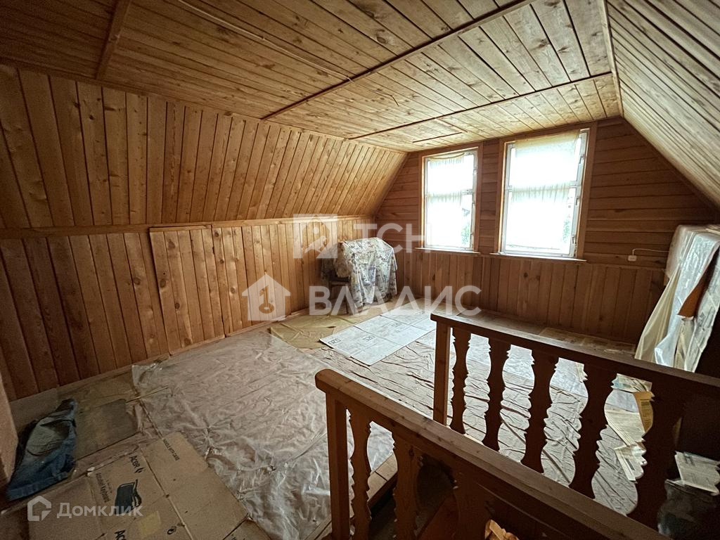 Дом 2-этажный, из бревна, на прочном фундаменте. Фундамент выполнен из железобетонных блоков и плит, подвал, глубиной 1.8 метр, есть спуск из дома. Общая площадь дома 80 метров, на первом этаже кухня, гостиная с камином и две комнаты. На втором этаже две комнаты. В дом заведено и разведено по дому электричество, подача воды с летнего обеспечения садоводства, но можно сделать свою скважину или колодец. В СНТ есть газ и решить вопрос по газификации тоже возможно. На ровном участке в 6 соток высажены деревья и кустарники, стоит подсобное помещение, которое можно переоборудовать в баню. Для въезда на территорию есть ворота, парковочная площадка отсыпана щебнем. Есть гараж на одну машину.