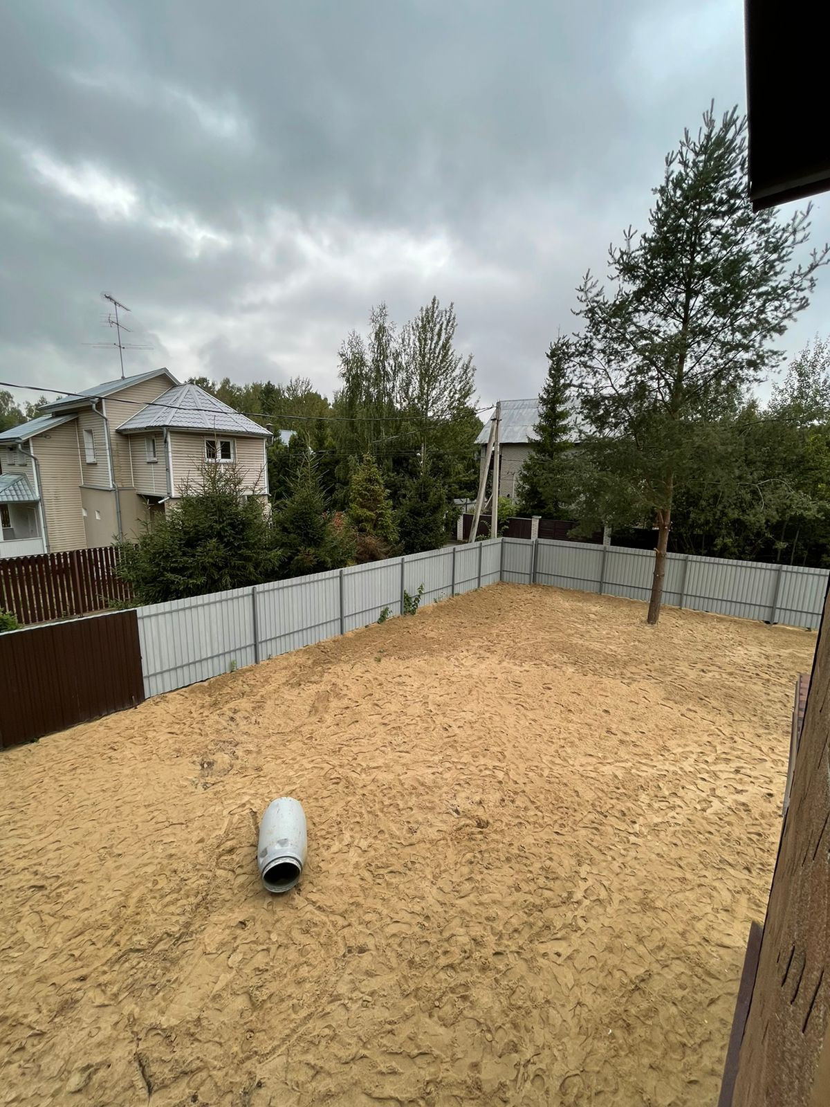Участок подняли и выровняли, завезли около 200 кубов грунта и песка.