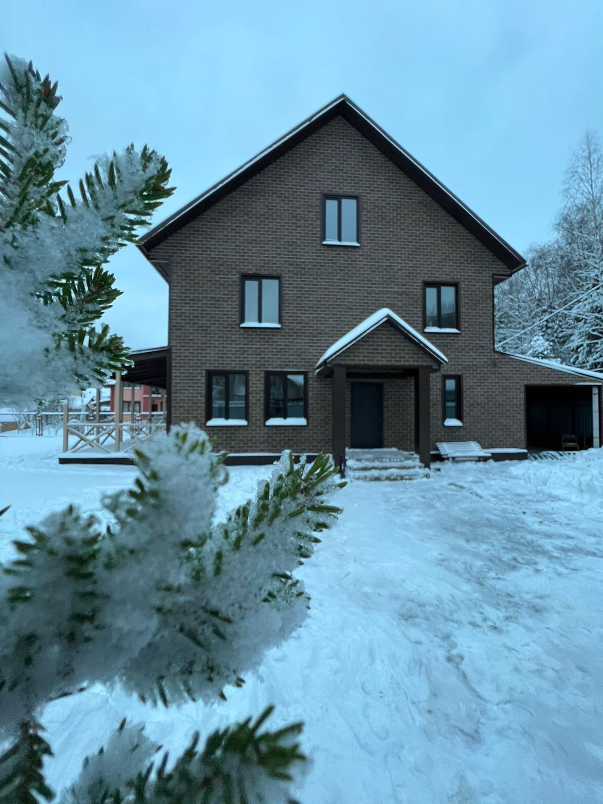На улице 3 парковочных места (о своих гостях мы тоже подумали). Дом полностью утеплен пеноплексом 50+брус в пакле, обшит фасадной плиткой Дёке премиум Бриг (цвет песчаный).