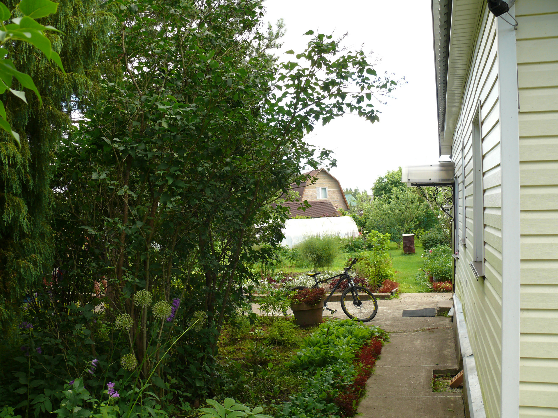 Ровная, ухоженная территория радует глаз декоративными туями, кустами, елью, цветами, плодовыми деревьями и кустарниками. Чистая вода в дом подается из собственного колодца и пригодна для питья. Небольшая душевная баня находится рядом с домом.