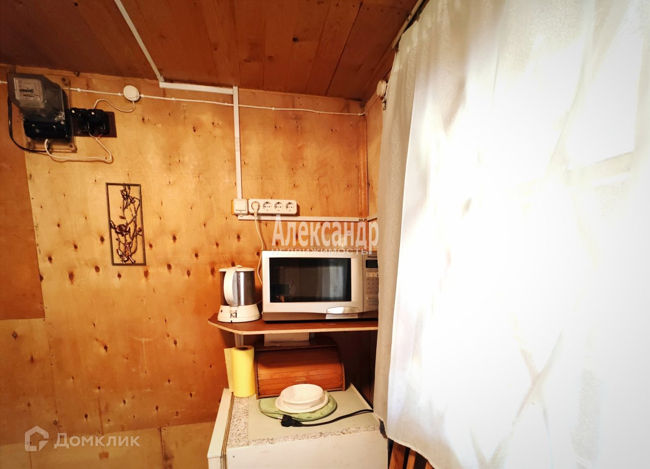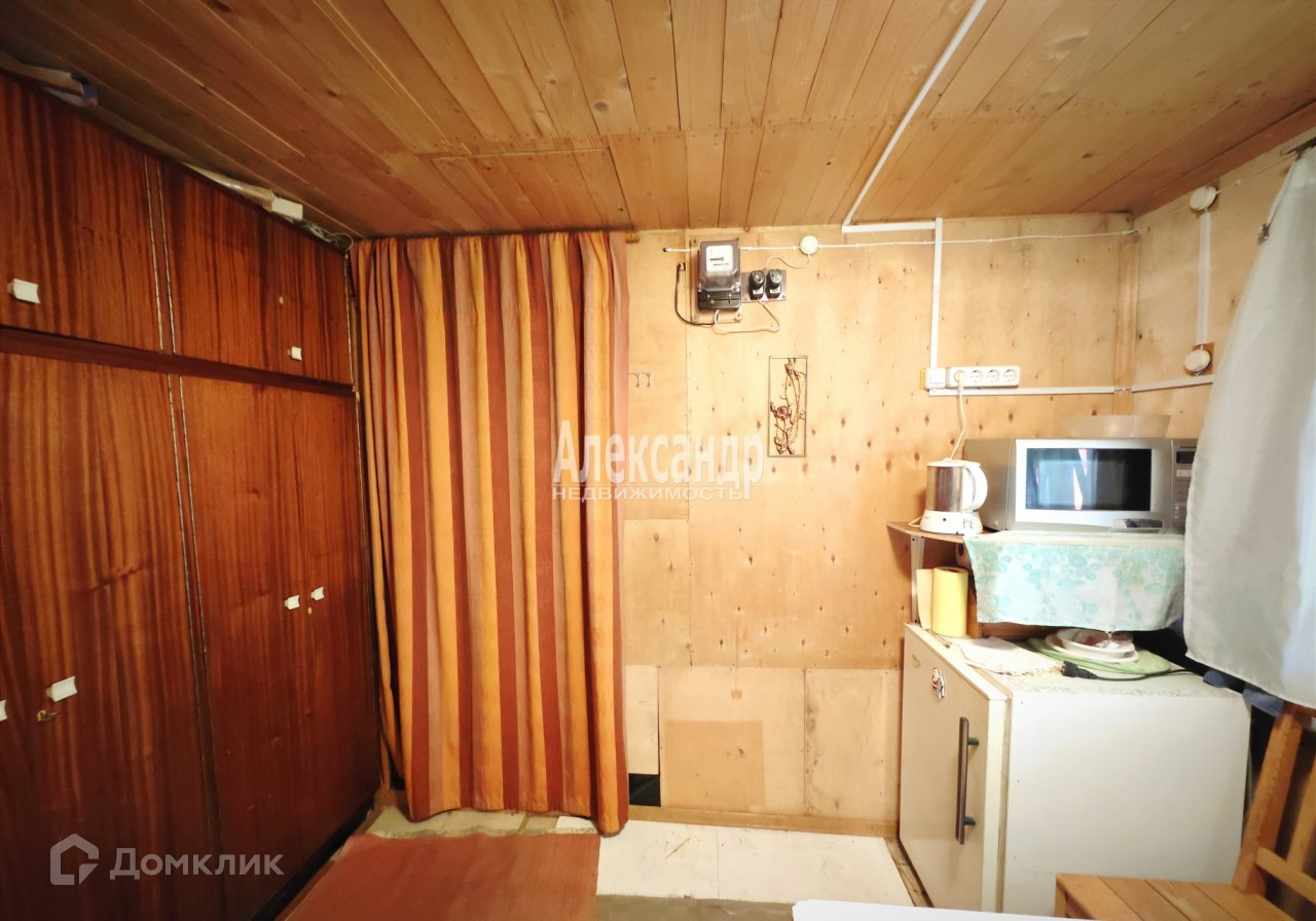 №1694814 Замечательный вариант в 25 км от СПБ. Дом в старом обжитом садоводстве. Магистральный газ. Зимний водопровод. Электричество 8 (10) кВт. Спешите увидеть, успейте купить! Действительно хороший участок с одноэтажным старым домом по очень интересной цене. Просторный ровный сухой участок 6,98 соток в уютном обжитом садоводстве `Дружба`. Большинство соседей живут круглый год. Остановка автобуса у въезда в садоводство (три прямых автобуса до ст. метро `Улица Дыбенко`). На въезде - шлагбаум. Участок находится рядом с зелёной зоной (через один участок от лесополосы). Тихое зелёное место, чистый воздух. Участок разработан и ухожен. Растут садовые деревья и кусты: яблоня, смородина, крыжовник. Участок со всех сторон огорожен. Газораспределительный узел в 45 метрах от участка, возможно подключение магистрального газа. Зимний водопровод проходит по улице, заведён на участок в летнем исполнении (требуется углубление труб до глубины промерзания). На участке деревянный летний дом 4 х 10 м. с террасой. Дом построен в 1996 году из толстых досок (аналог бруса) сечением 40 х 100 мм, утеплён минеральной ватой и снаружи обшит вагонкой. Котлован под домом засыпан строительным песком. В доме спальня, кухня и прихожая. Внутренняя отделка - фанера. Установлена металлическая печь `Емеля`, экономичная, с малым расходом дров и высокой теплоотдачей. Дом продается с мебелью, бытовой техникой и предметами интерьера. Можно оборудовать второй этаж. Электричество 220 В. Вода - колодец (три кольца), для мытья и для полива. Есть сарай и летний туалет на улице. В садоводстве есть пожарный водоём, в котором даже можно искупаться. Отличное снабжение. Продуктовый магазин прямо в садоводстве. Развитая инфраструктура пос. Разметелево. Экологически чистое место. Лес, который примыкает к садоводству, богат грибами и ягодами. Великолепное место для отдыха от городского шума и суеты. Документы готовы к продаже. Межевание проведено. Все дороги чистятся зимой. Приезжайте, Вам понравится.