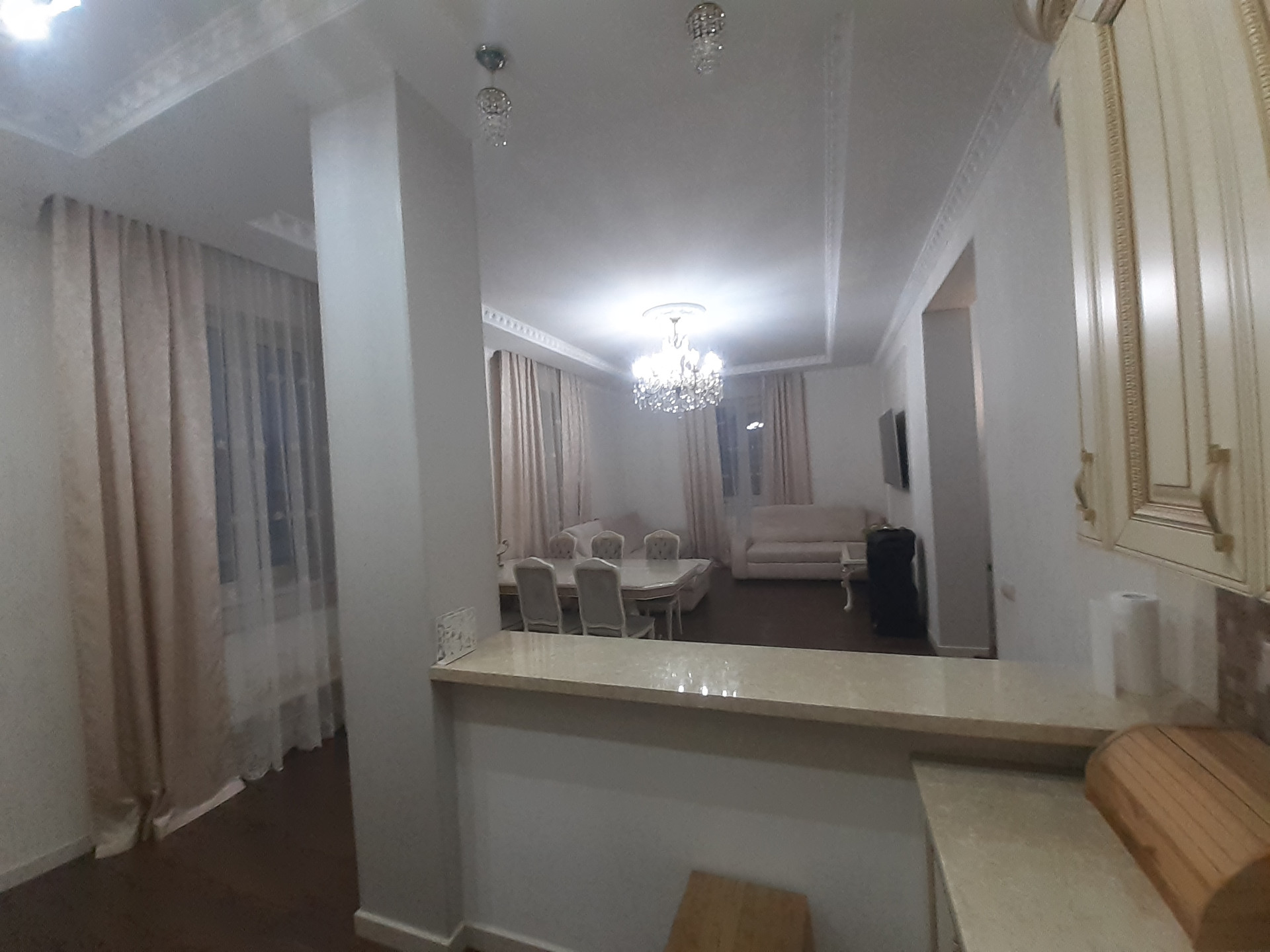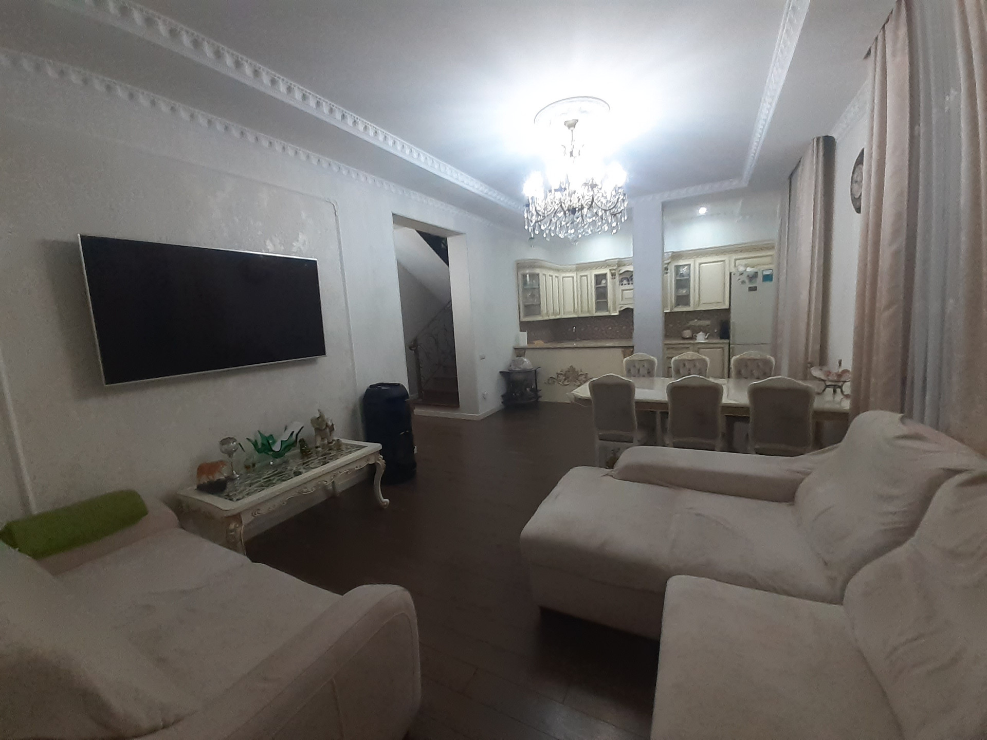 Превосходно в классическом стиле выполнена внутренняя отделка, использованы итальянские обои, немецкий ламинат, установлены шикарные люстры и элементы освещения, современная бытовая техника и электроприборы. За придомовой территорией и улицей ведется видеонаблюдение.