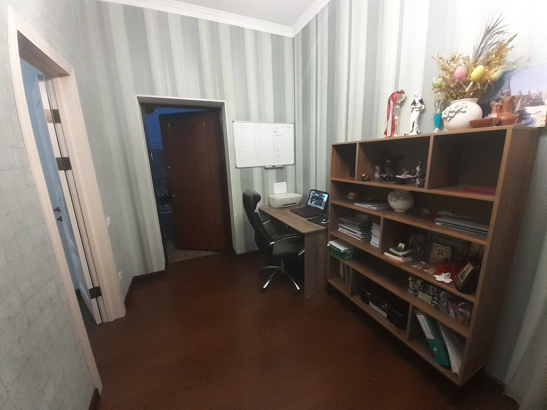 Добротный 2-х этажный особняк с хорошим дизайнерским ремонтом из качественных материалов во внешней и внутренней отделке. Удобная планировка состоит из кухни-гостиной и спальни на первом этаже, 3-х спален и одного кабинета с балконом-терассой на 2-м этаже, также спроектированы 2 санузла по одному на каждом этаже (на 2-м этаже санузел без отделки, пока применяется под хозяйственну комнату-кладовку). В помещении очень тепло и сухо, котельная оборудована Купером для отопления, как дровами, так и газом, и электричеством, потенциальная мощность обогрева до 360 м2.