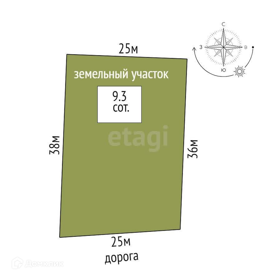 Площадь участка 9.3 сот.