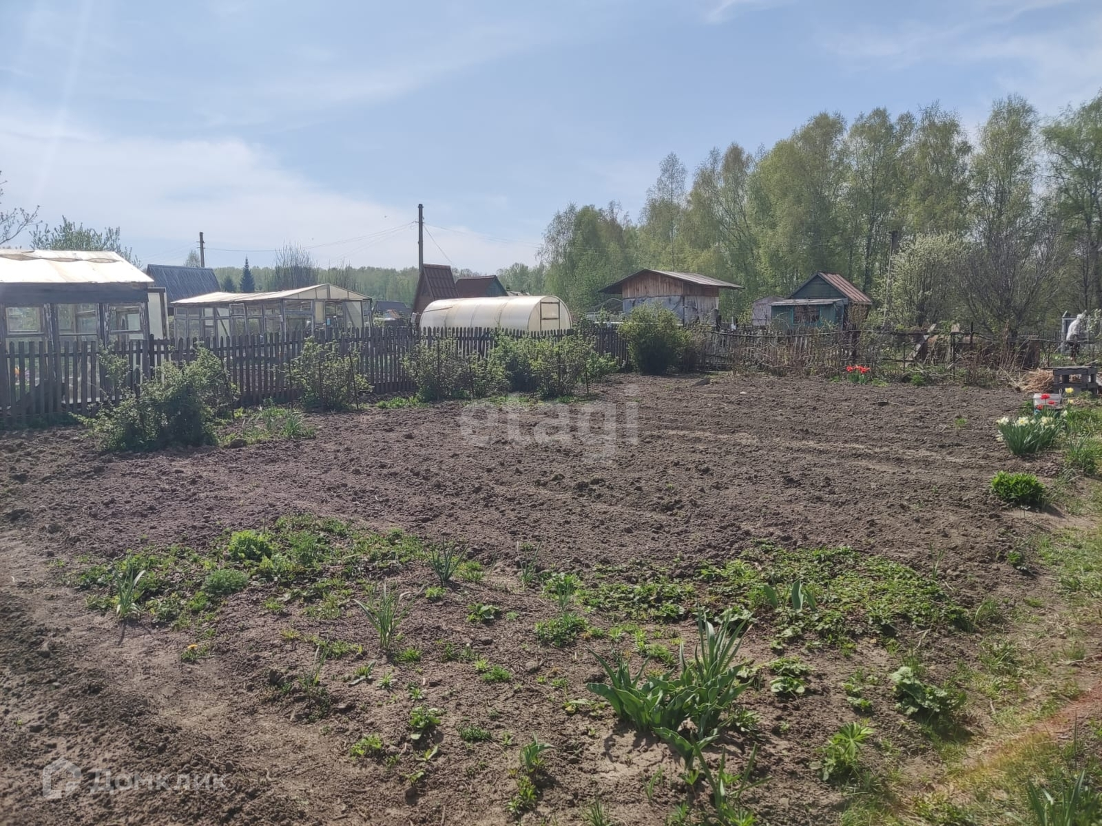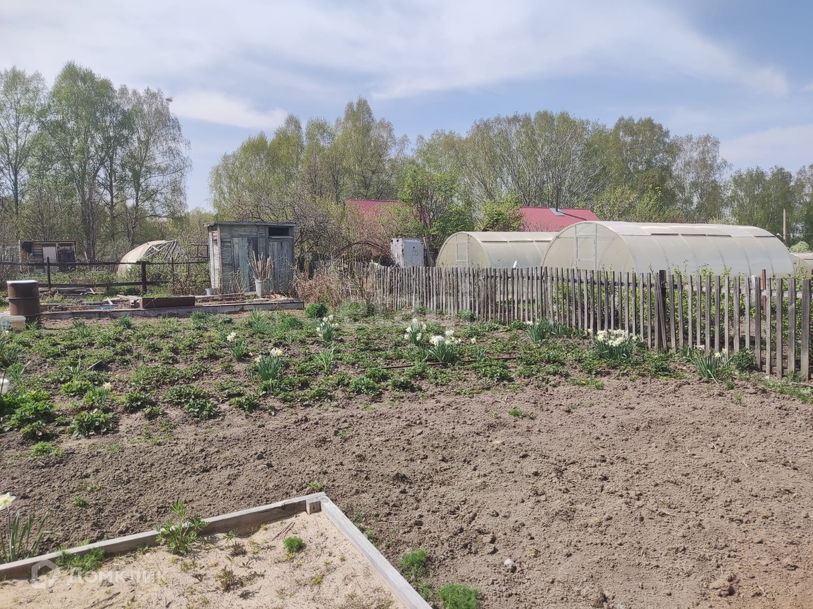 Забор по периметру : со стороны улицы из проф листа, со стороны соседей (с трех сторон) деревянный из штакетника. Посадки плодово ягодные: жимолость, малина, крыжовник, смородина красная и чёрная, полукультурка, ирга, виктория. Участок находится у одного хозяина 20 лет. Земля удобрялась всегда экологичными удобрениями. Соседи все дружелюбные.