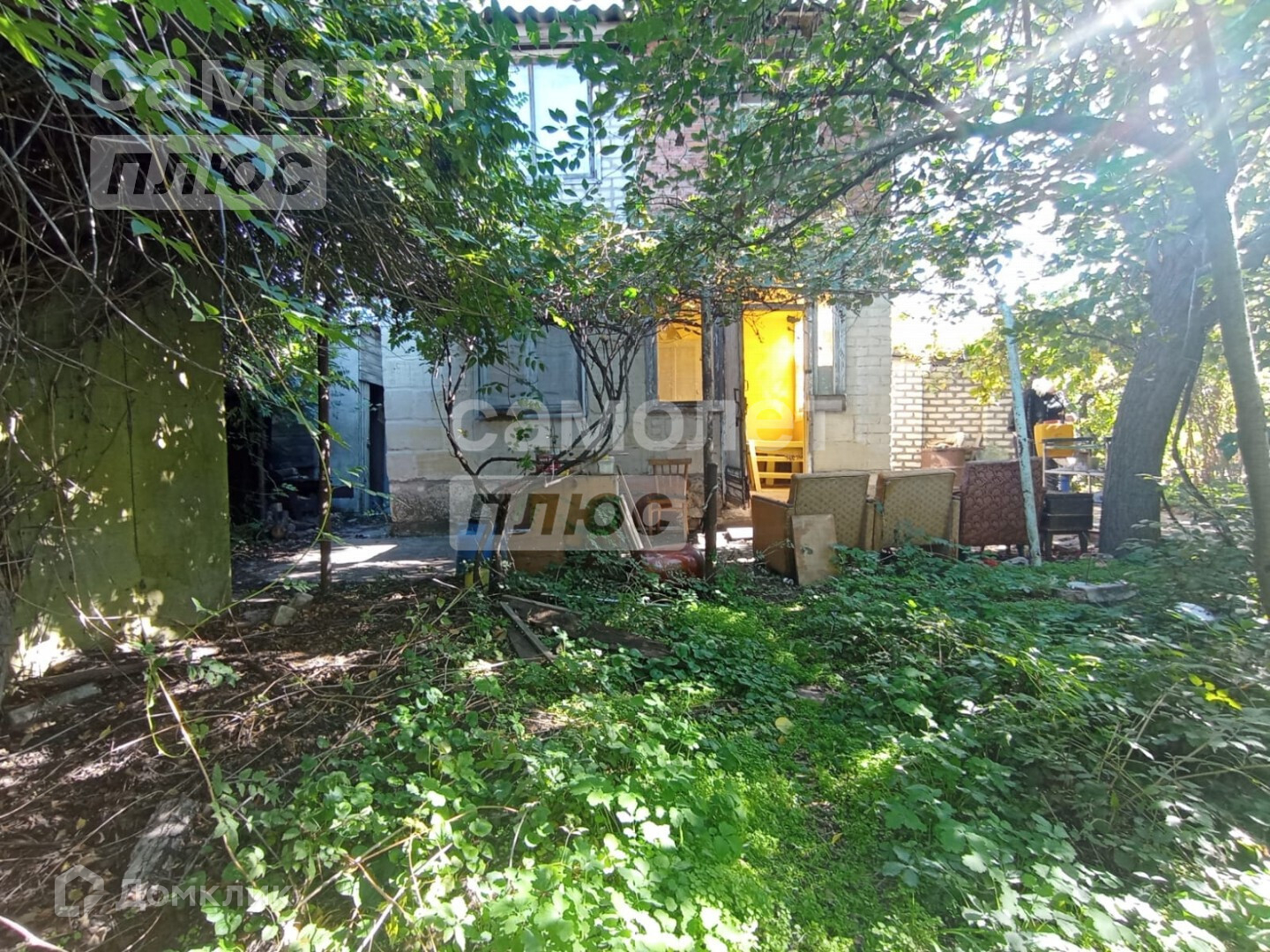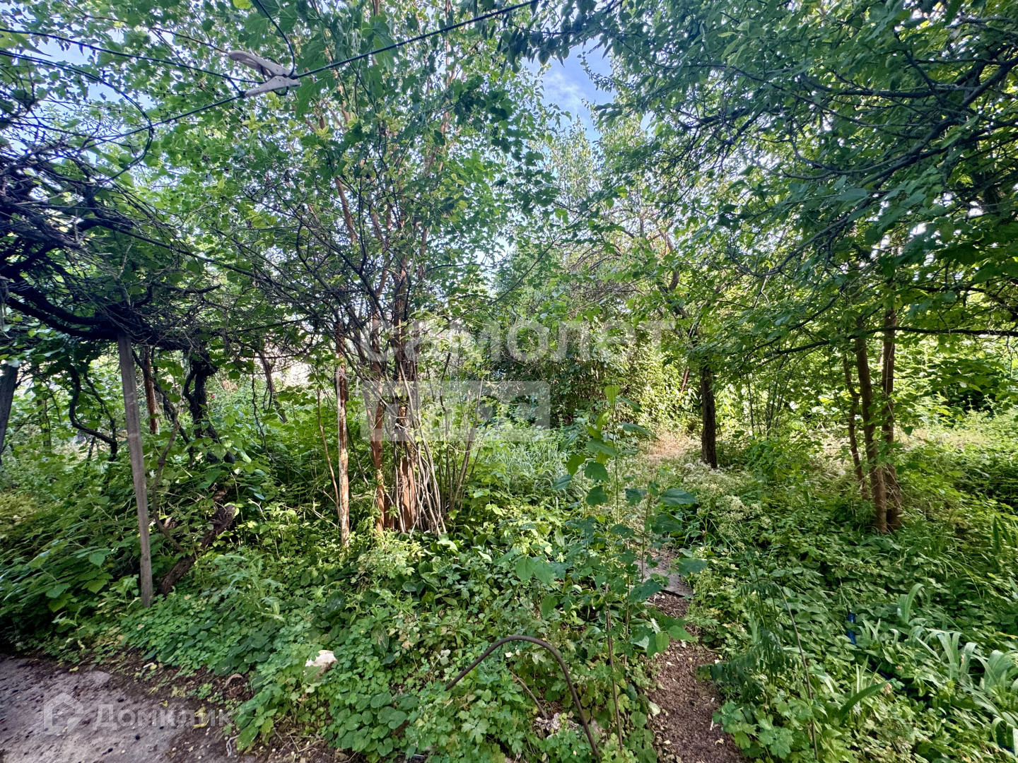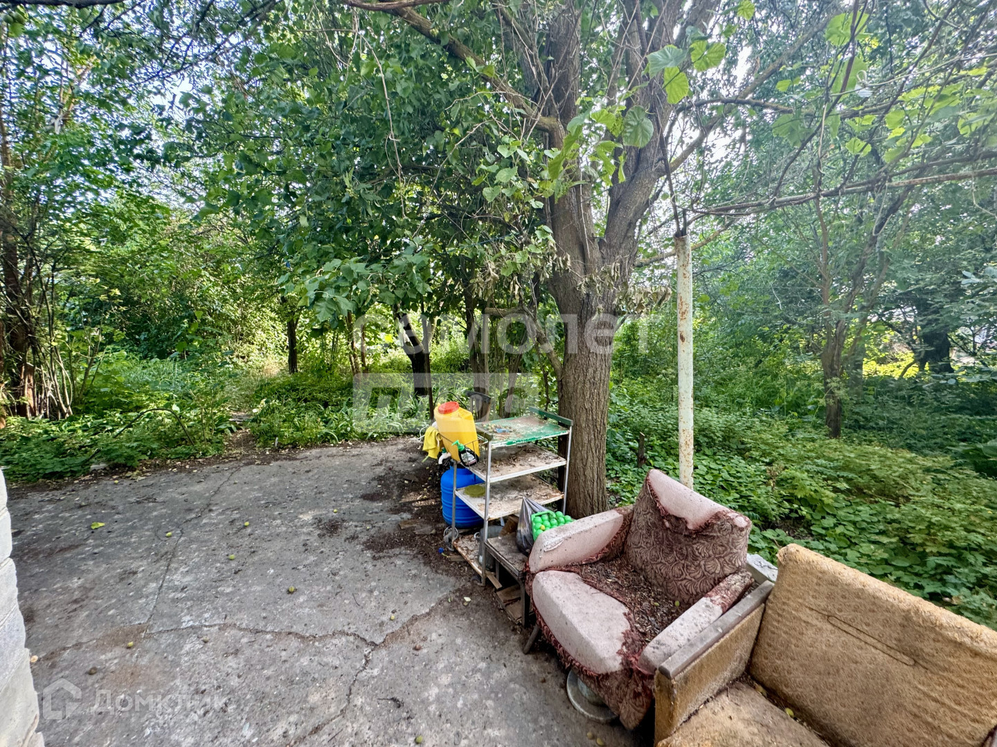 На участке в 6 сот с садом расположен небольшой двухэтажный дом с гаражом, хоз.постройки, ёмкость для воды.