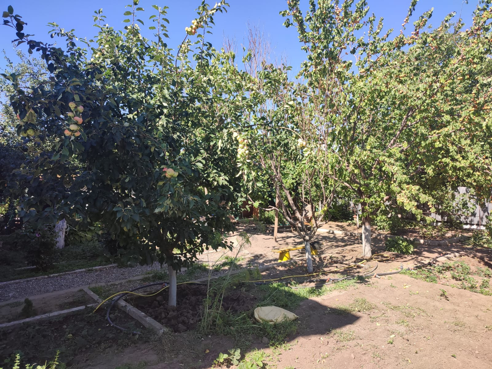 - Сад : 2 груши, яблони (яндыки, осенние, колоновидные), черешня, 3 абрикоса (сортовые), жимолость, боярышник, несколько сортов винограда, жасмин и тд