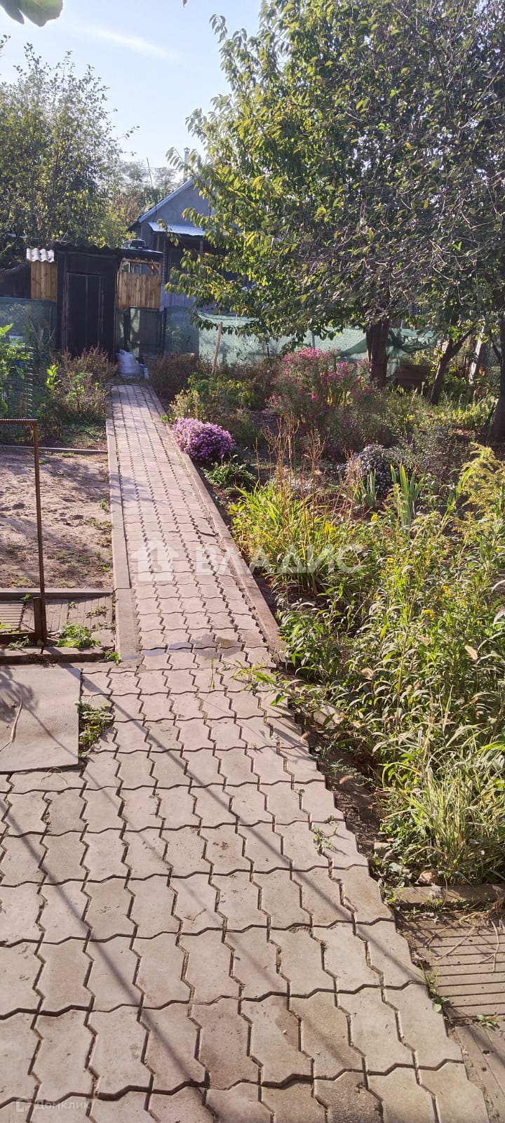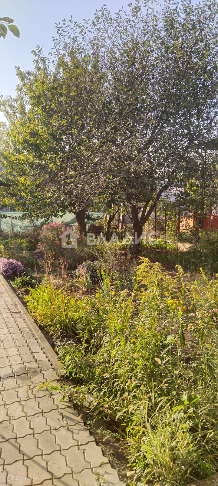 -Во дворе садовые деревья ,цветы