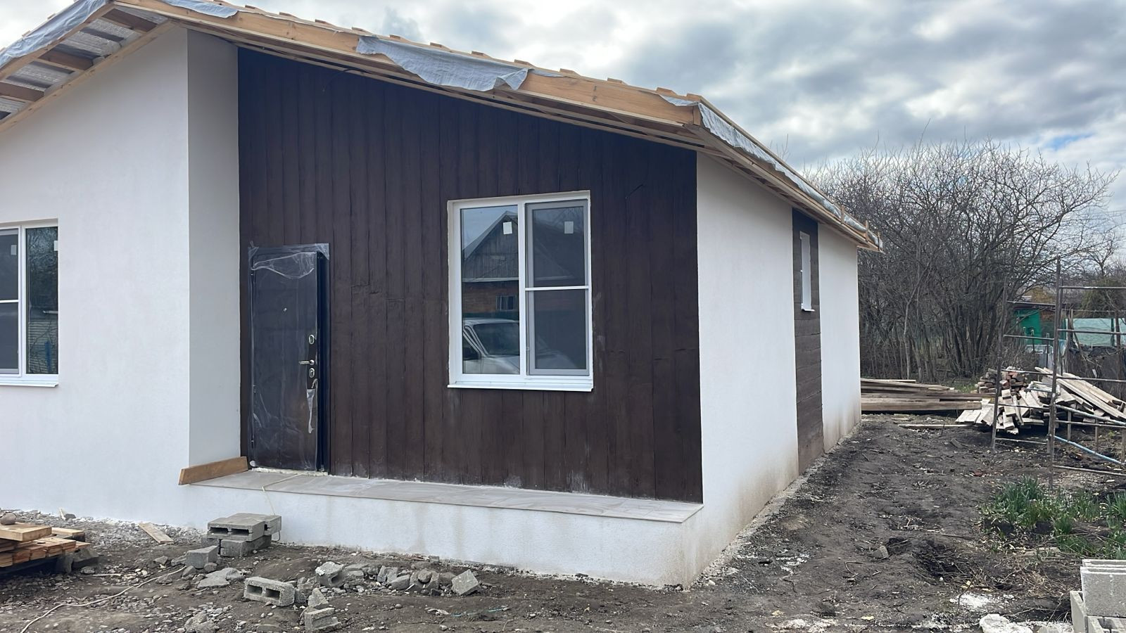 Продаётся дом СНТ «Электрон», 95/ 42/ 22, блок.  Район п. Знаменский. Дом от застройщика! Подходят все виды ипотек! Дом 95 кв.м. - 3 комнаты, кухня-гостиная, совмещённый с/узел. Застройщиком сделан ремонт. В дом заведены все коммуникации- свет, вода (скважина), сделан септик. Земельный участок 4 сотки. Дом в стадии активного доделывания! Звоните, интересное предложение по очень выгодной цене!