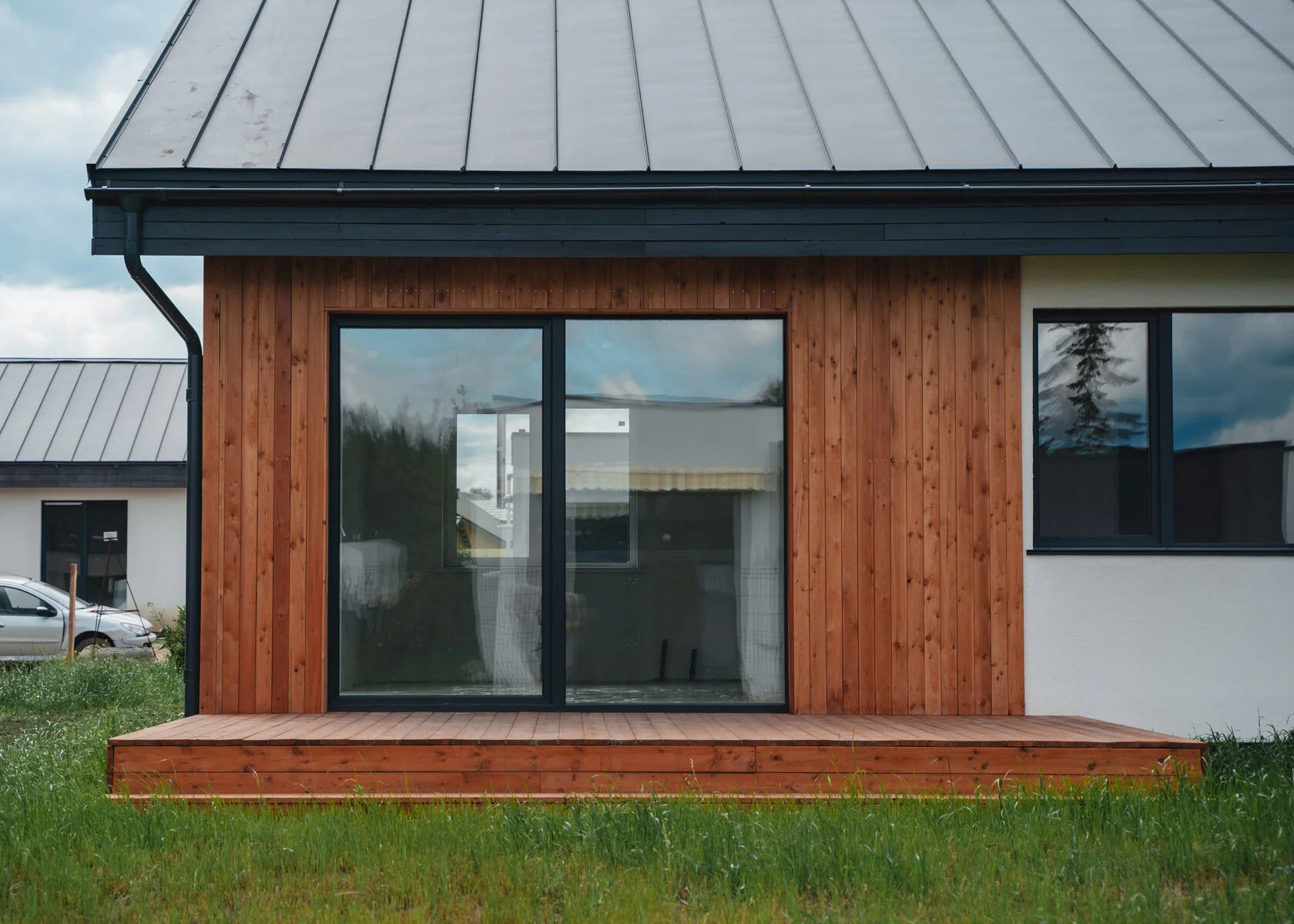 Внешняя отделка фасадов и карнизов: декоративная штукатурка/облицовочный кирпич и строганная доска