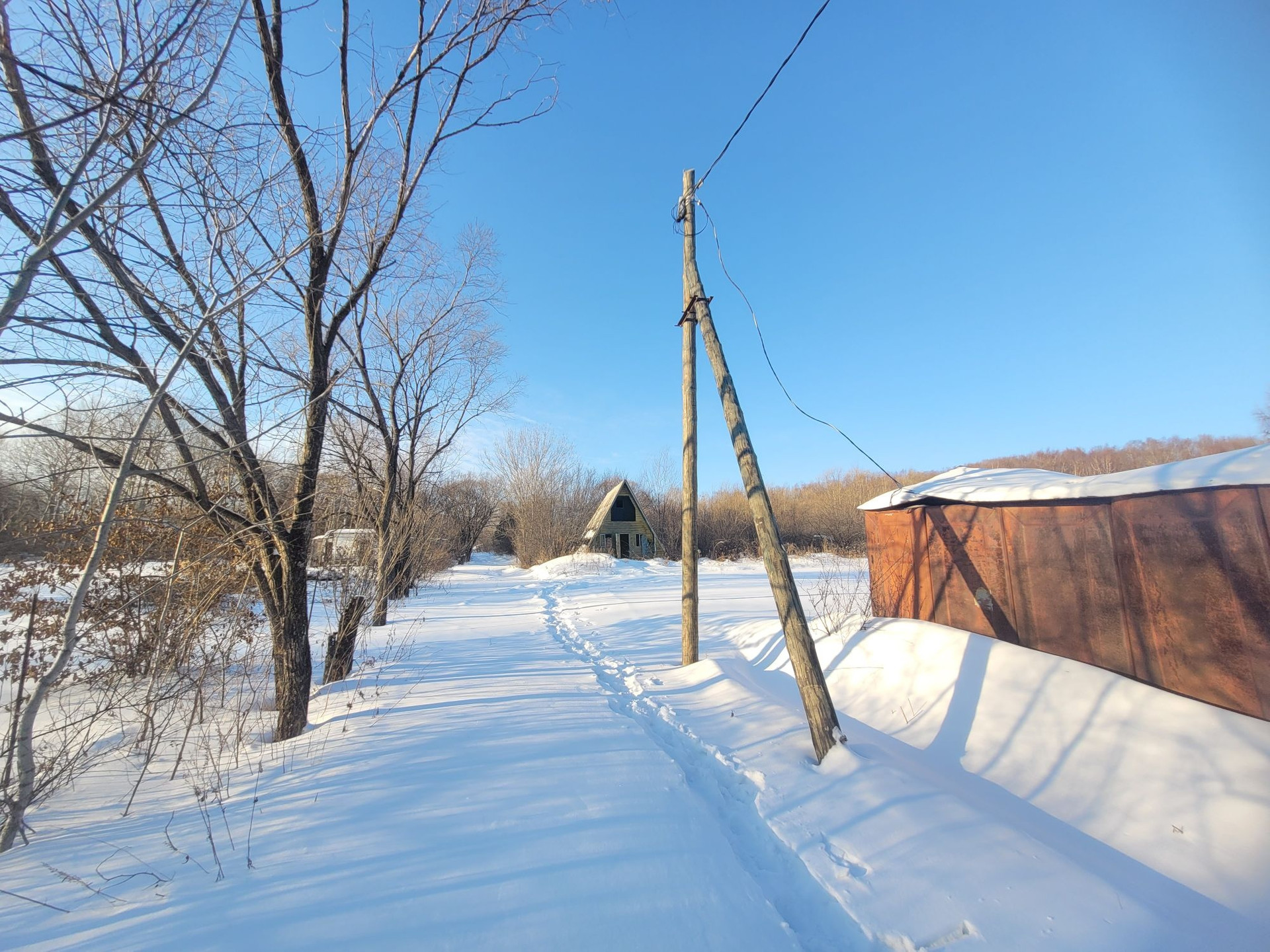 На углу участка расположен столб с электричеством, т.к. не было надобности, электричество не проводилось. Вопрос нескольких тысяч рублей и одного дня времени.