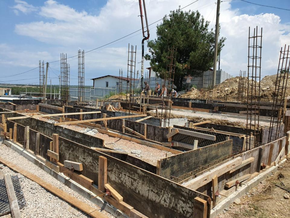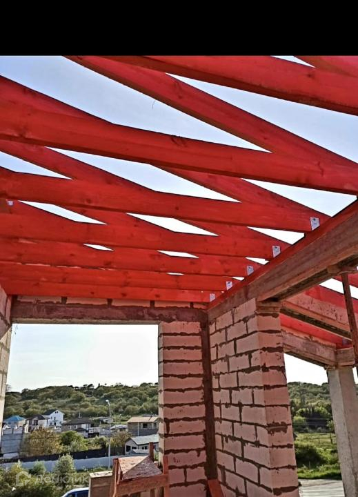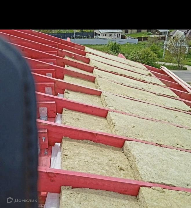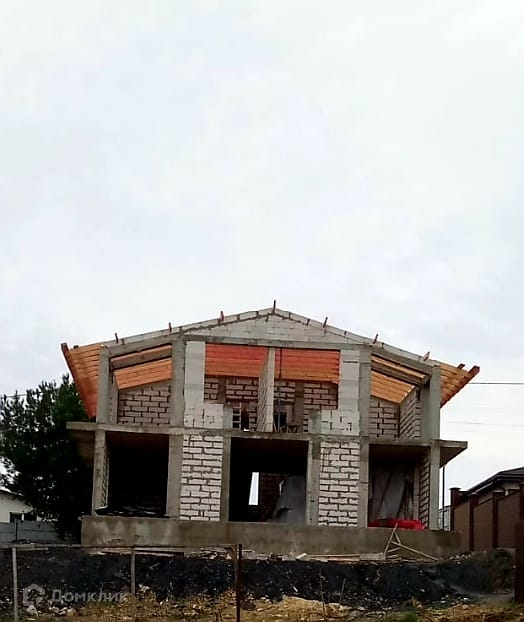 Дом построен из кирпича, в камень. На высоком ленточном фундаменте + монолитная армированная плита. Колоны, пояса. Кровля - мягкая битумная черепица. Кровля утеплена и будет подшита. Вентиляционные выходы на кровлю с кухни и с/узла! Дом утепляется минеральной базальтовой ватой (5см). Коммуникации в дом не заведены.