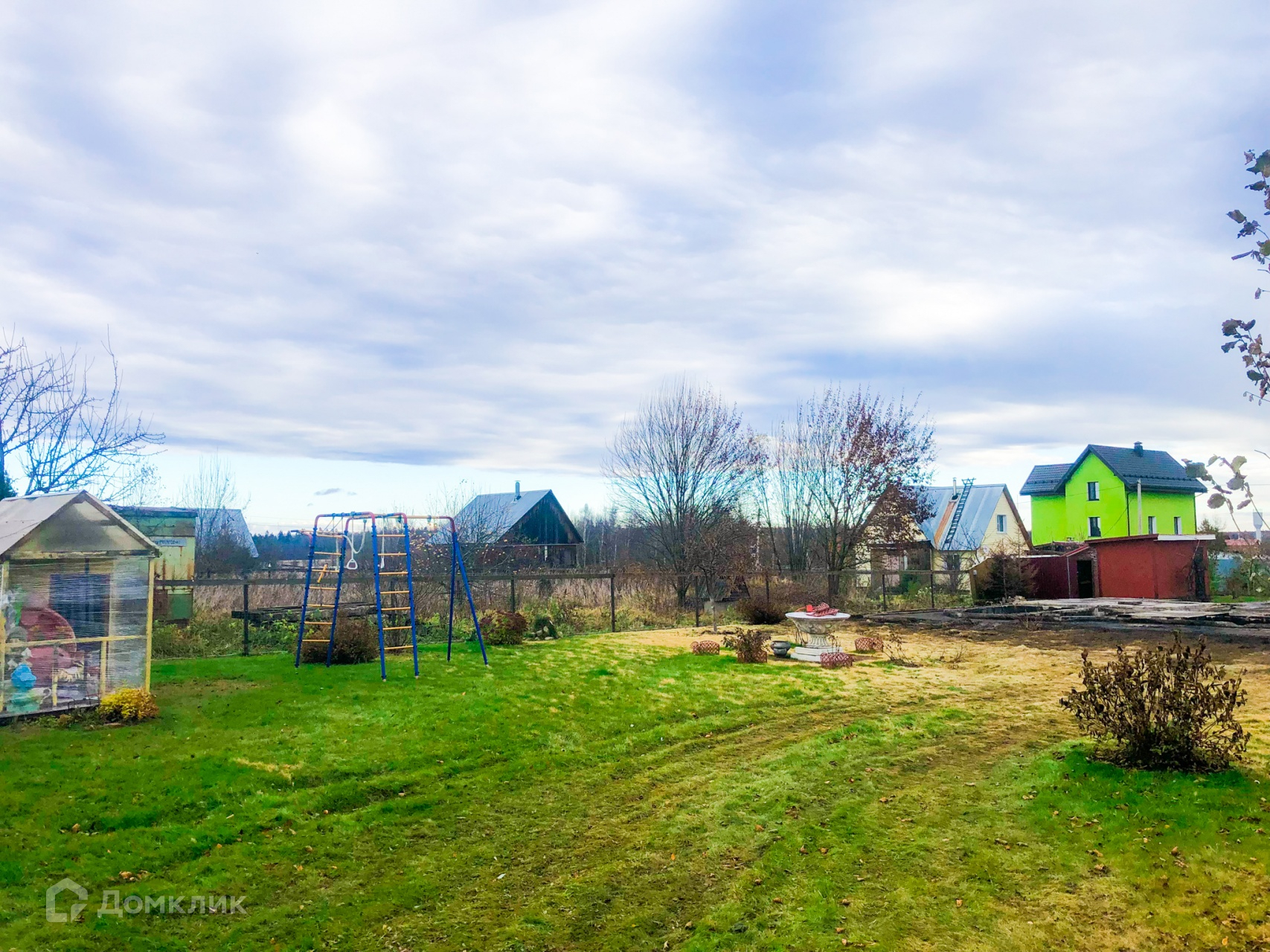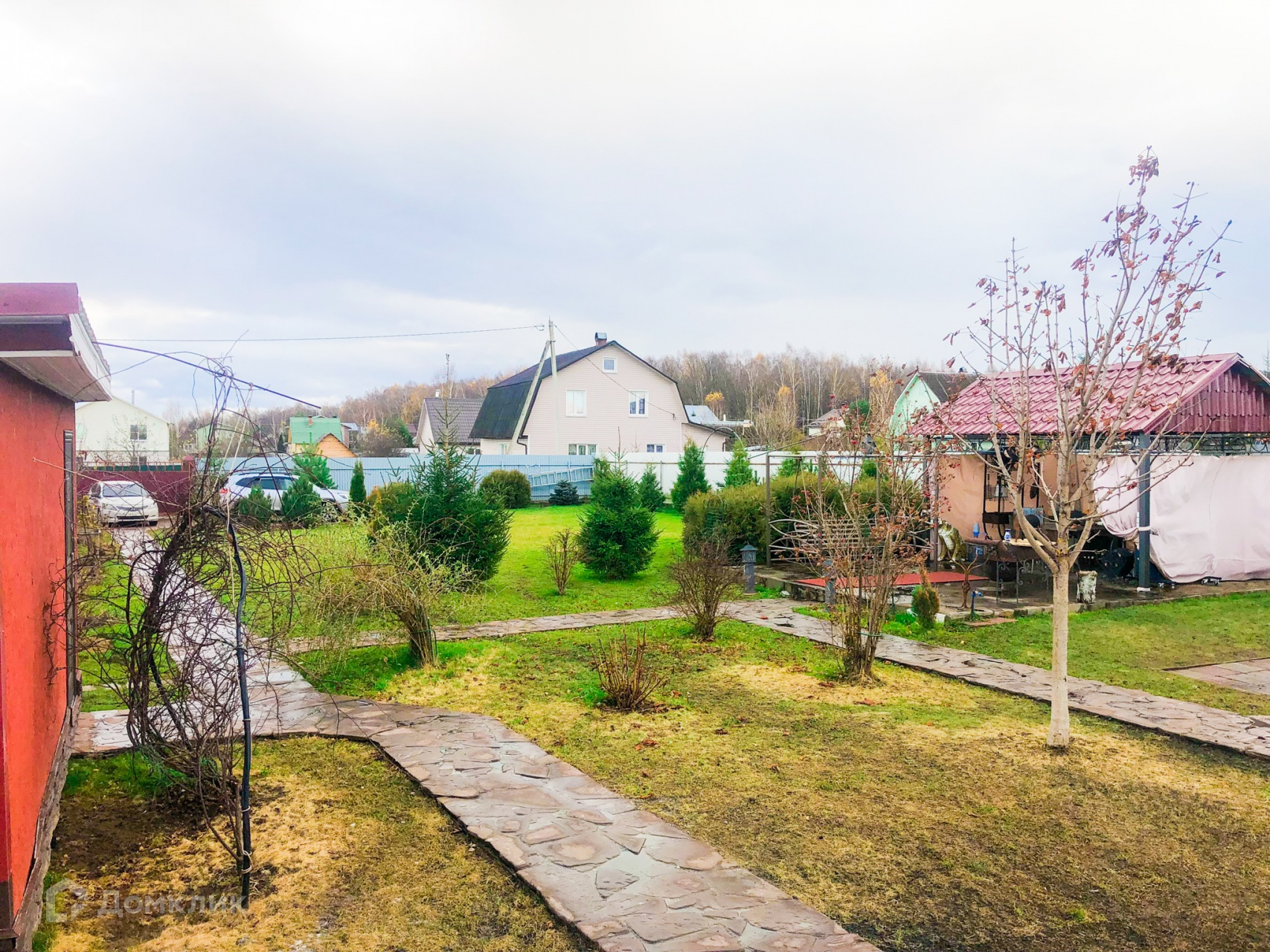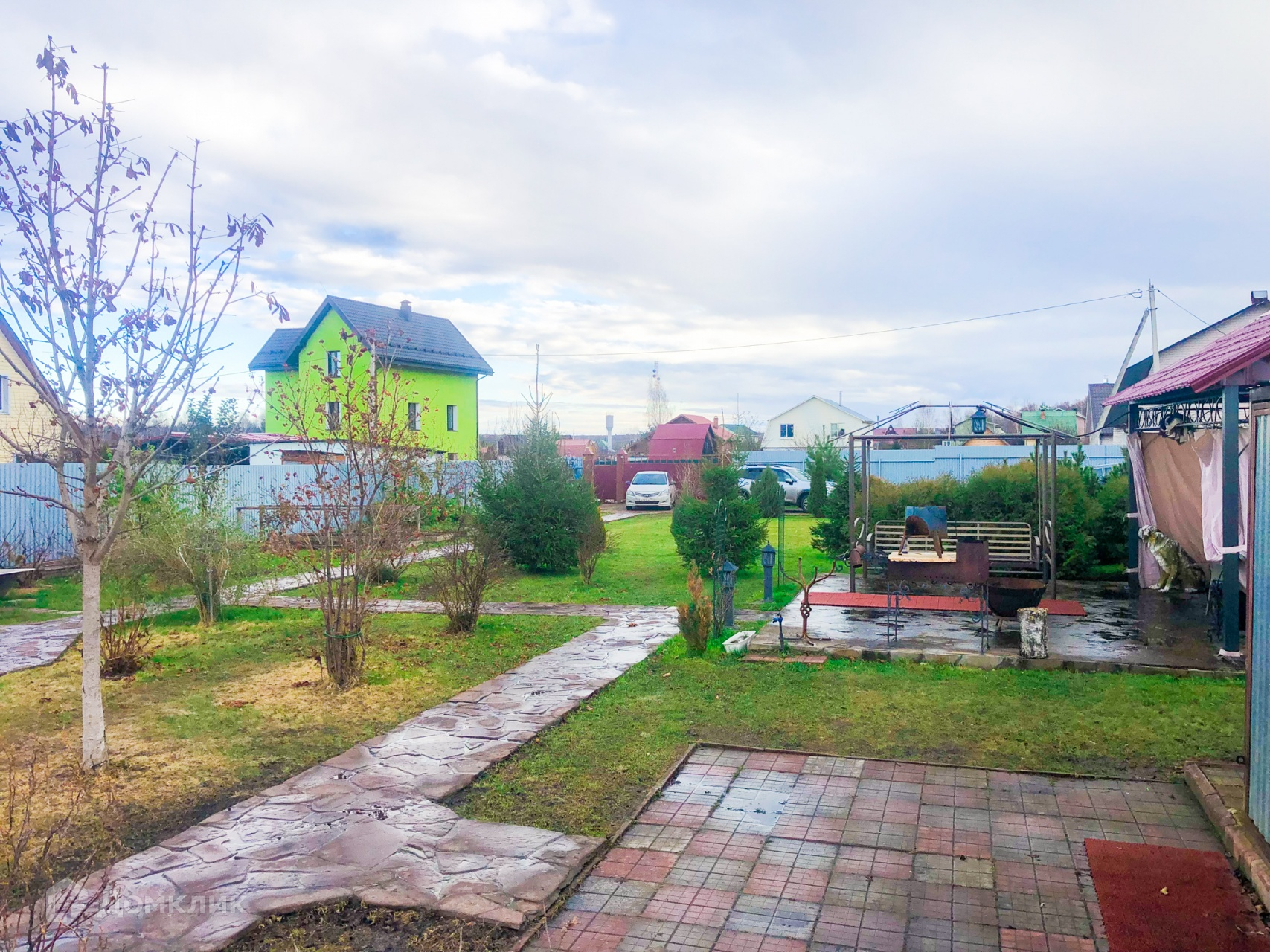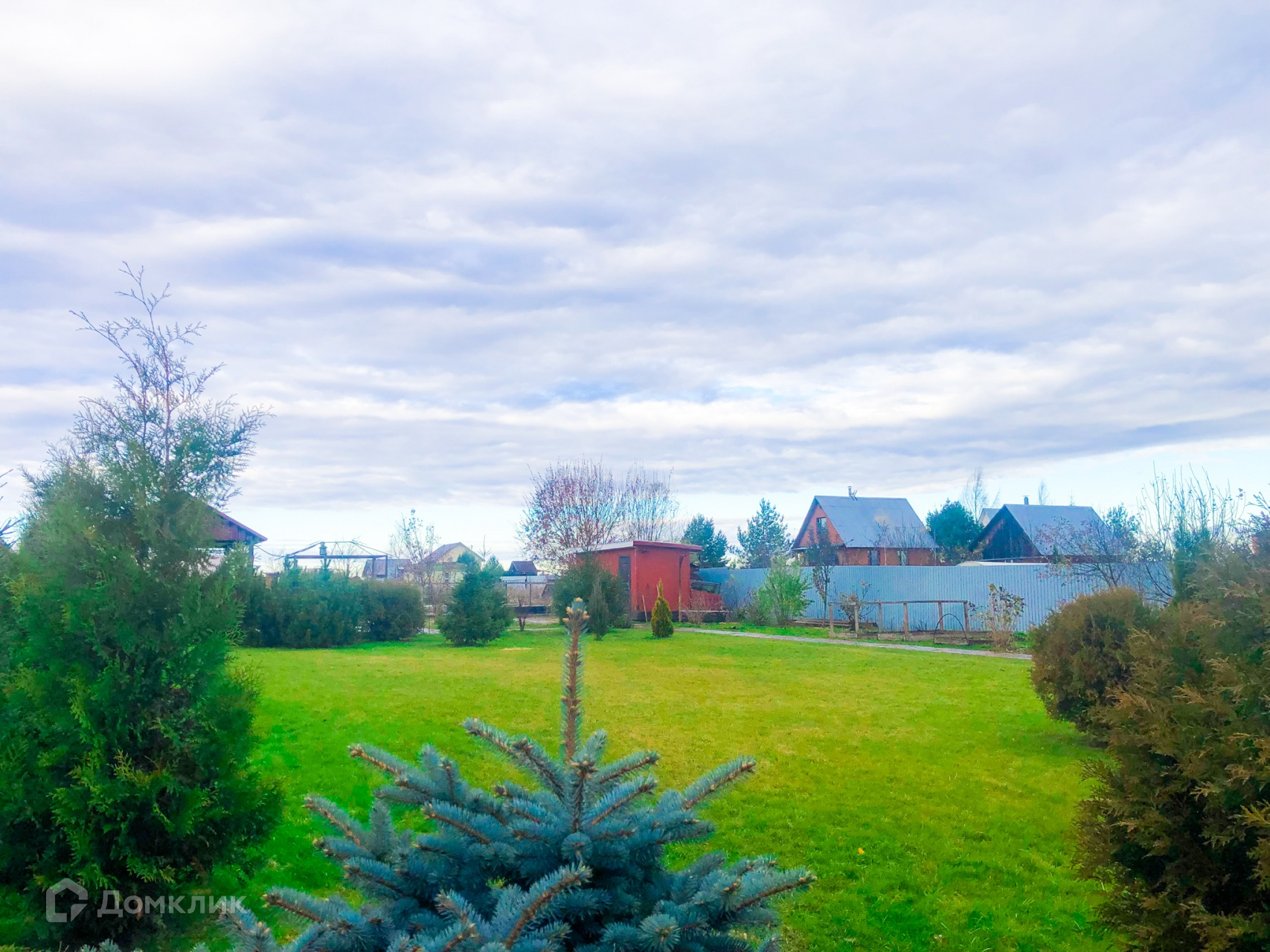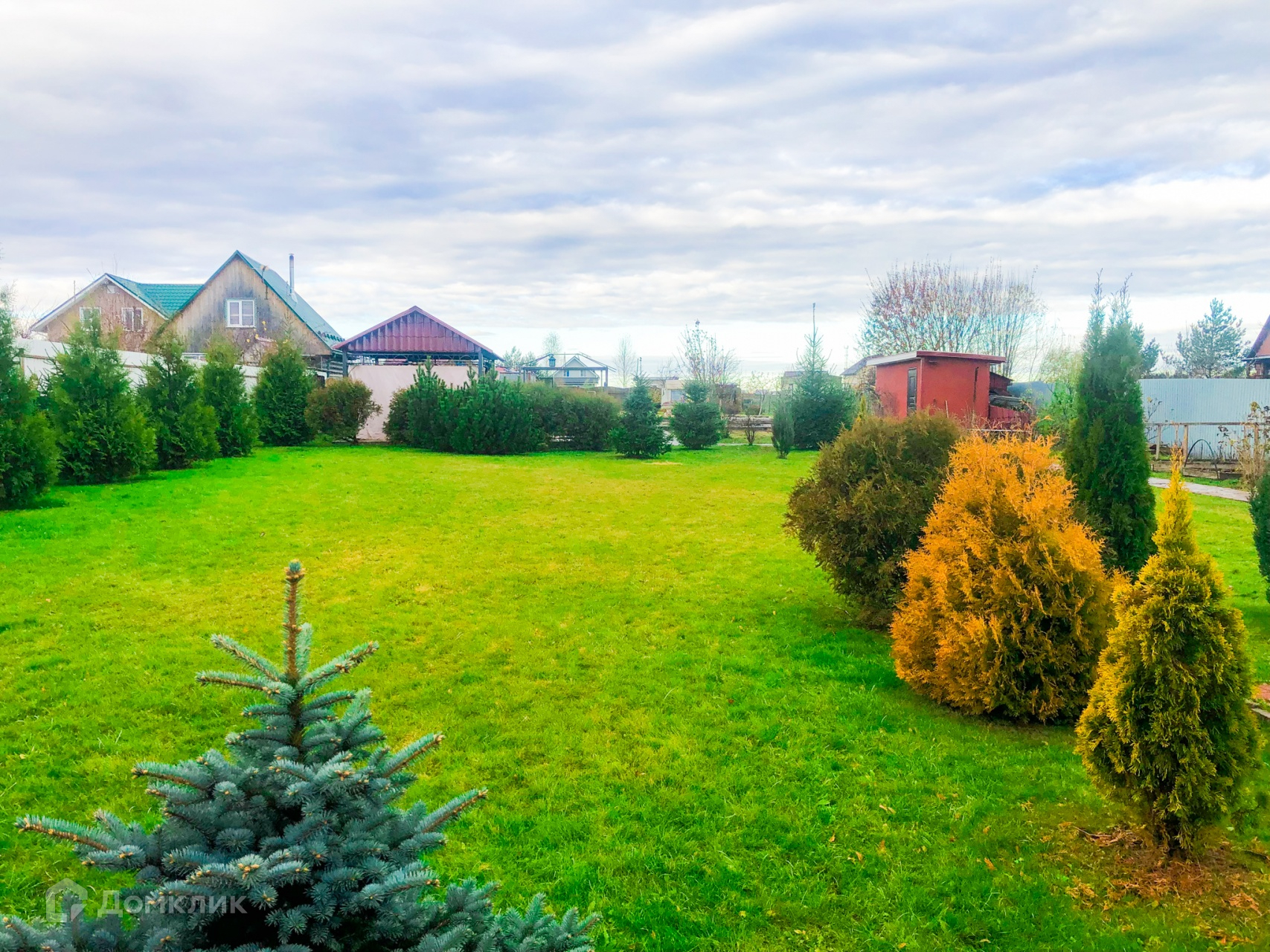 Также на участке много плодовых и декоративных деревьев, газон и небольшой огород.