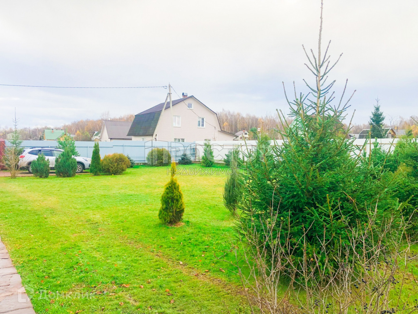 - Газон и декоративные хвойные деревья