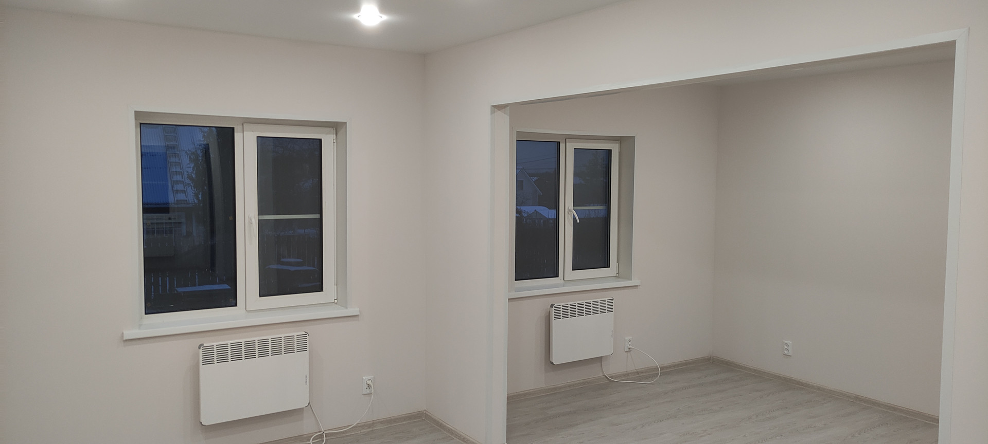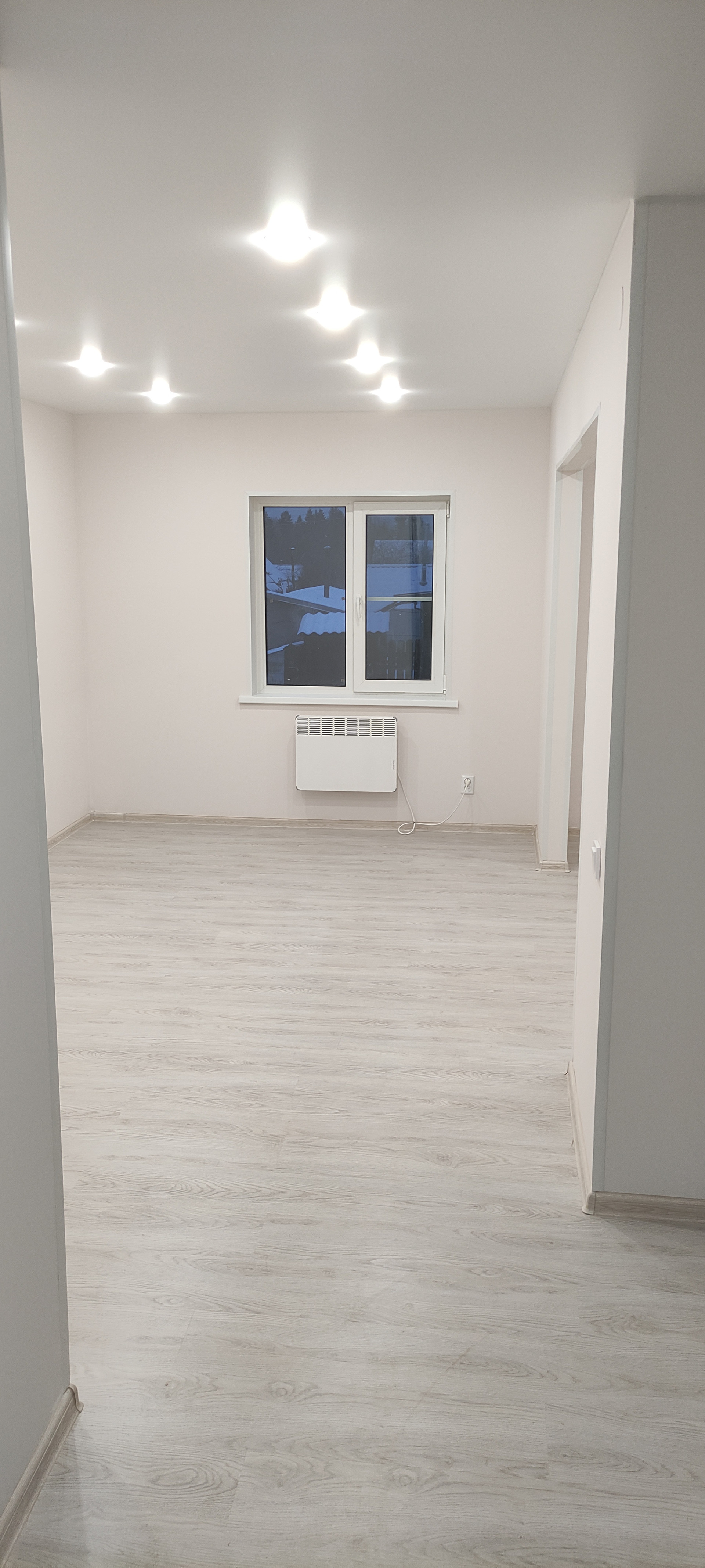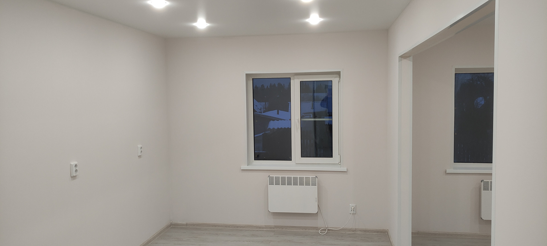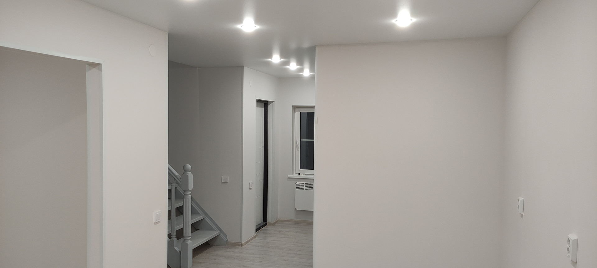 - Внутренняя отделка: крашеные стены по гипсокартону (Можно помыть, легко перекрасить или поклеить обои), натяжные потолки, ламинат, керамогранит, панели);