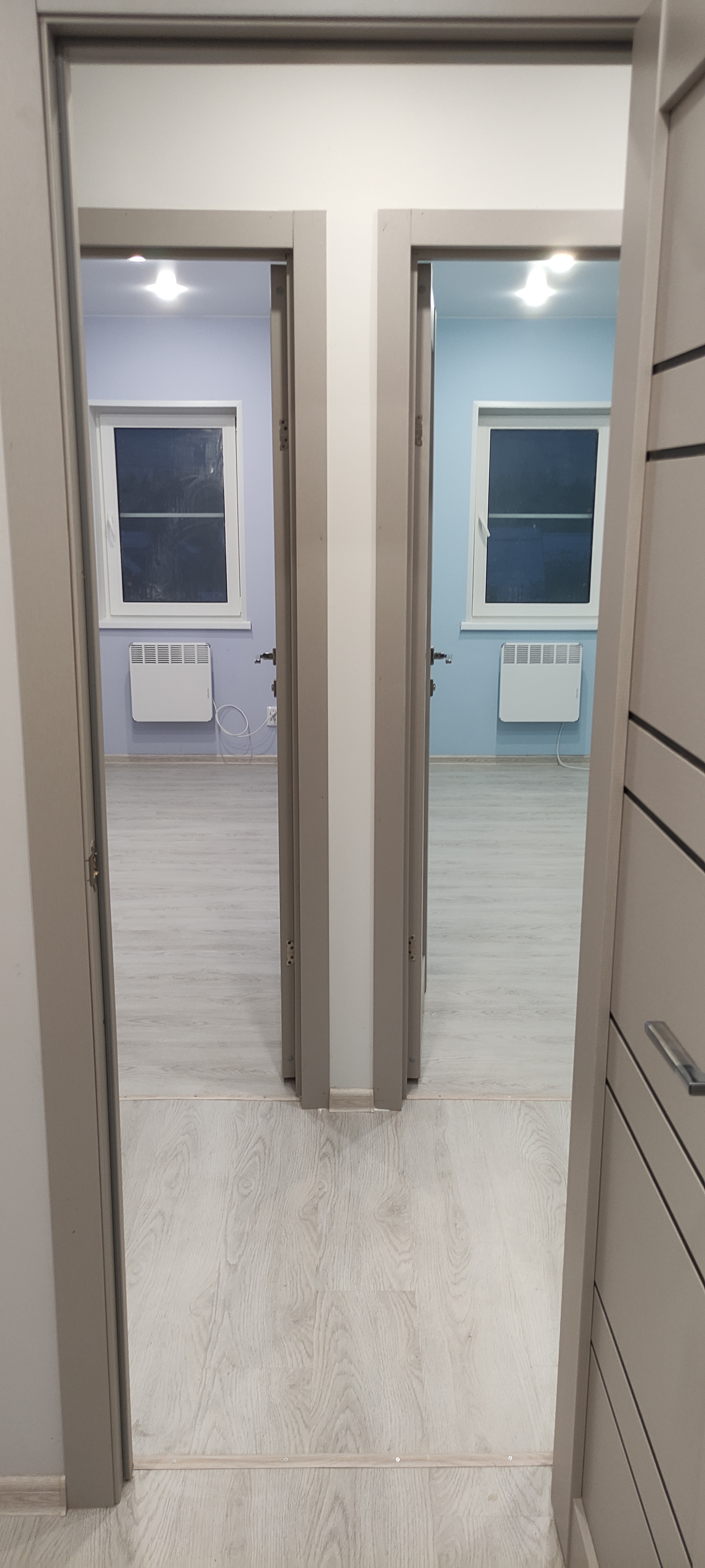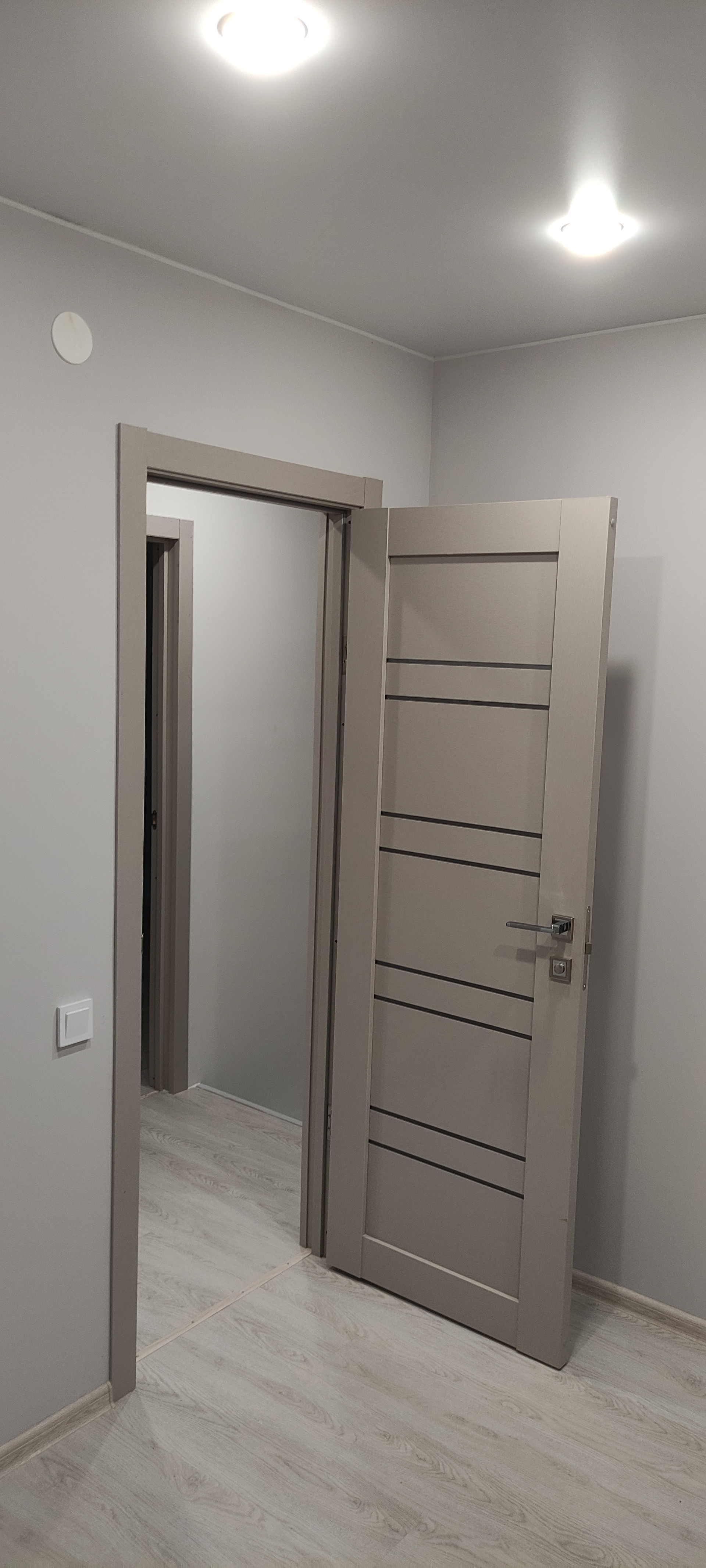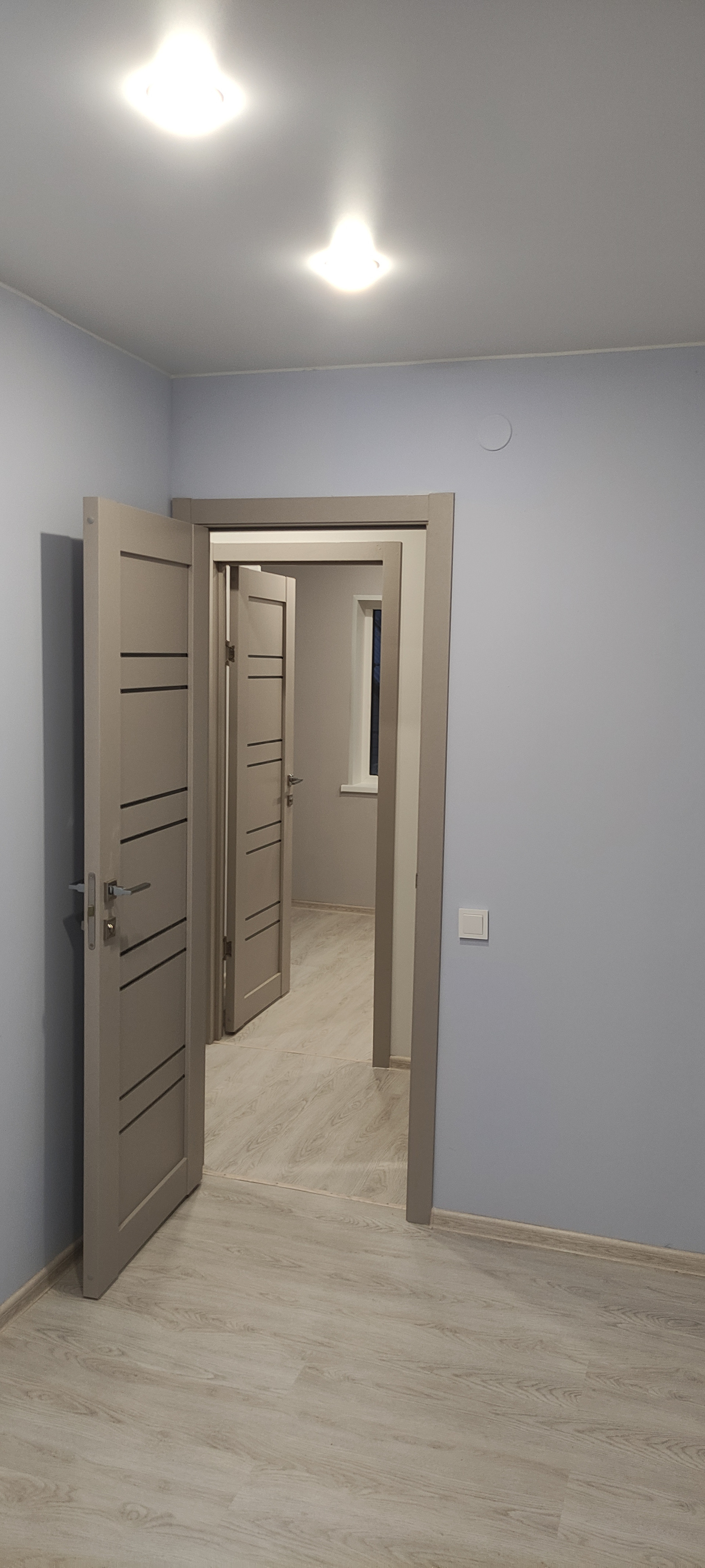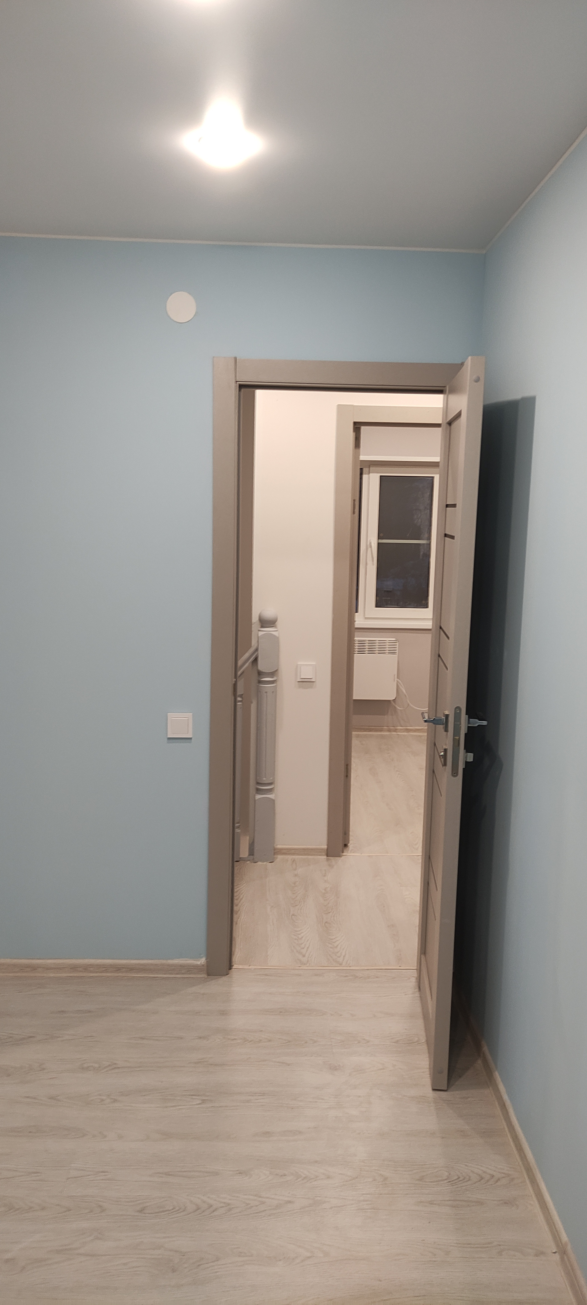 - Внутренняя отделка: крашеные стены по гипсокартону (Можно помыть, легко перекрасить или поклеить обои), натяжные потолки, ламинат, керамогранит, панели);