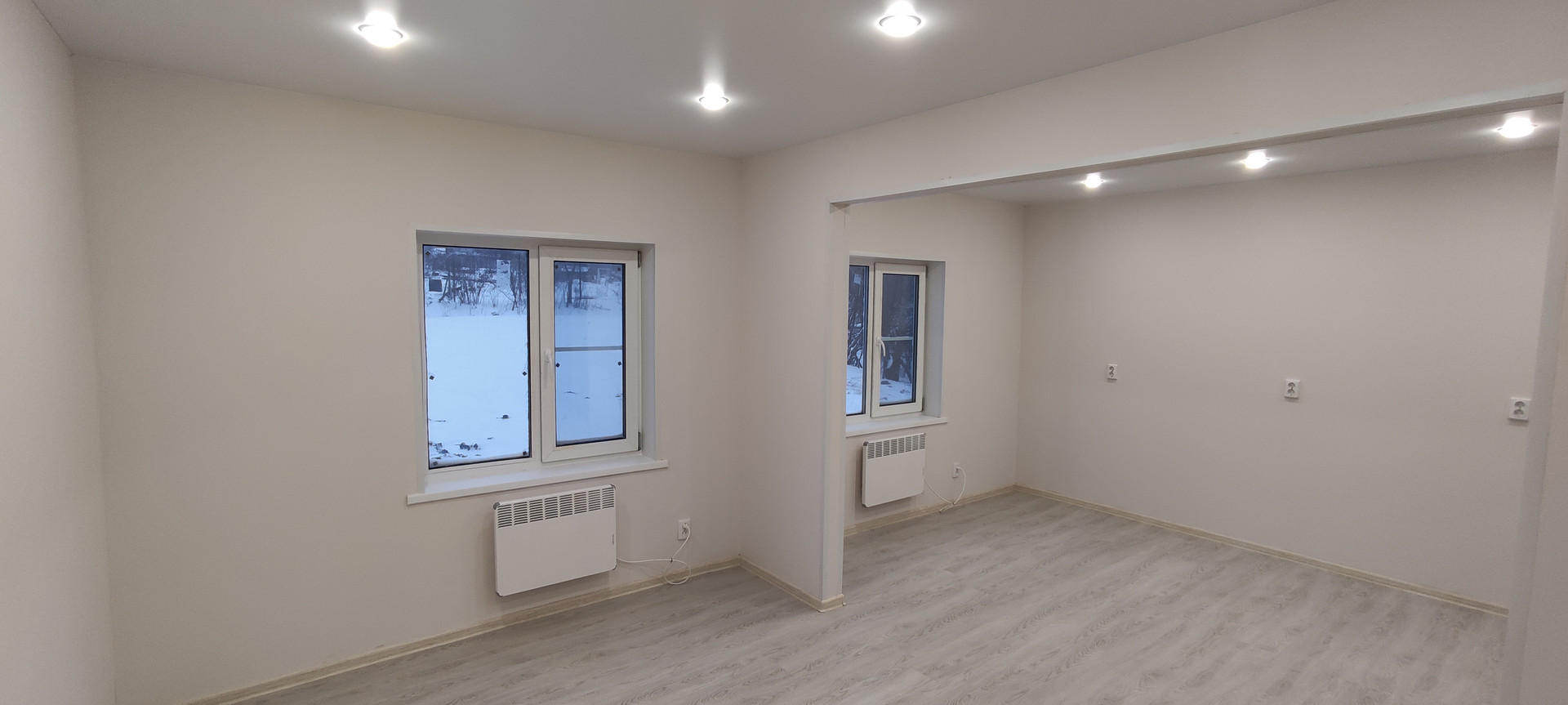 - Внутренняя отделка: крашеные стены по гипсокартону (Можно помыть, быстро перекрасить, поклеить обои), натяжные потолки, ламинат, керамогранит, панели);