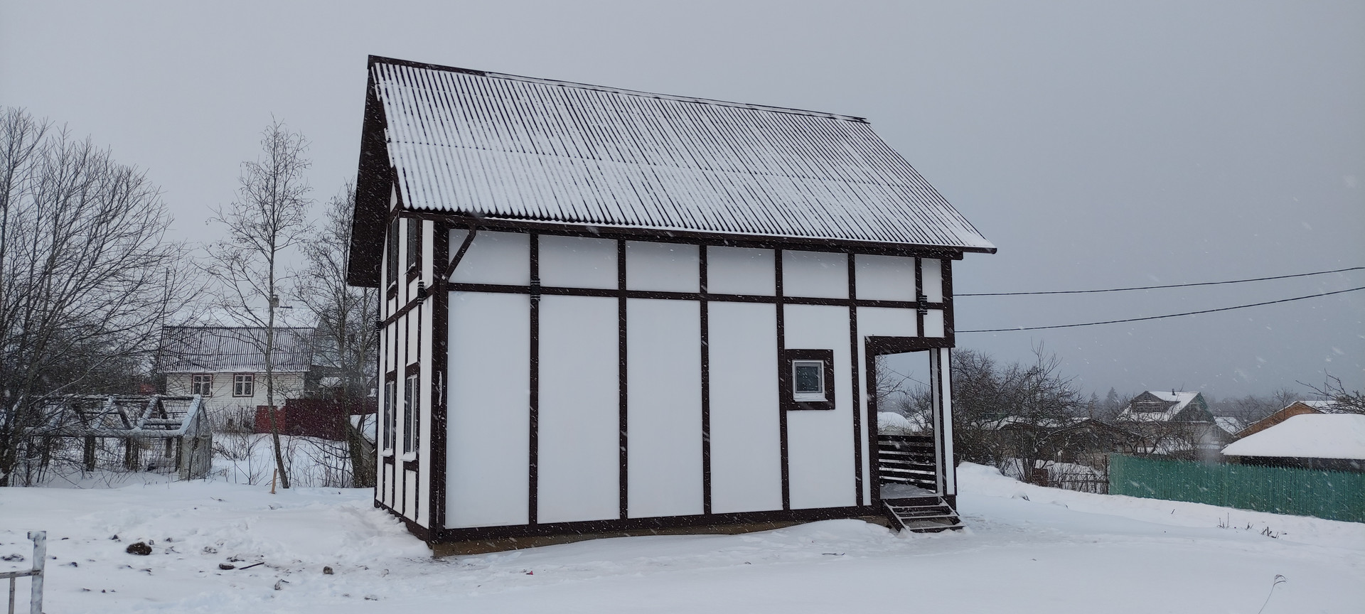 - Фасад дома изготовлен в стиле «Фахверк»;