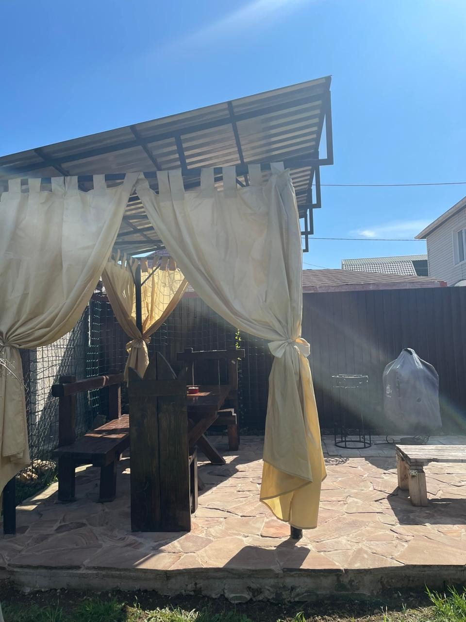 Во дворе дома построена беседка, мангал, тандыр.