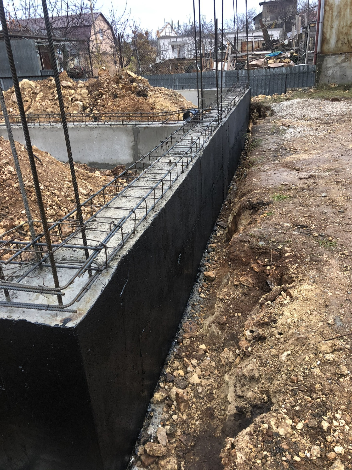 Выкопан фундамент глубиной 80 см. И Залита бетонная подушка шириной 60 см , которая привязана к скале . ленточный фундамент , общая высота и глубина Фундамента 1,50м. Ширина фундамента 40 см. Крыша четырёх скатная , мягкая Кровля .