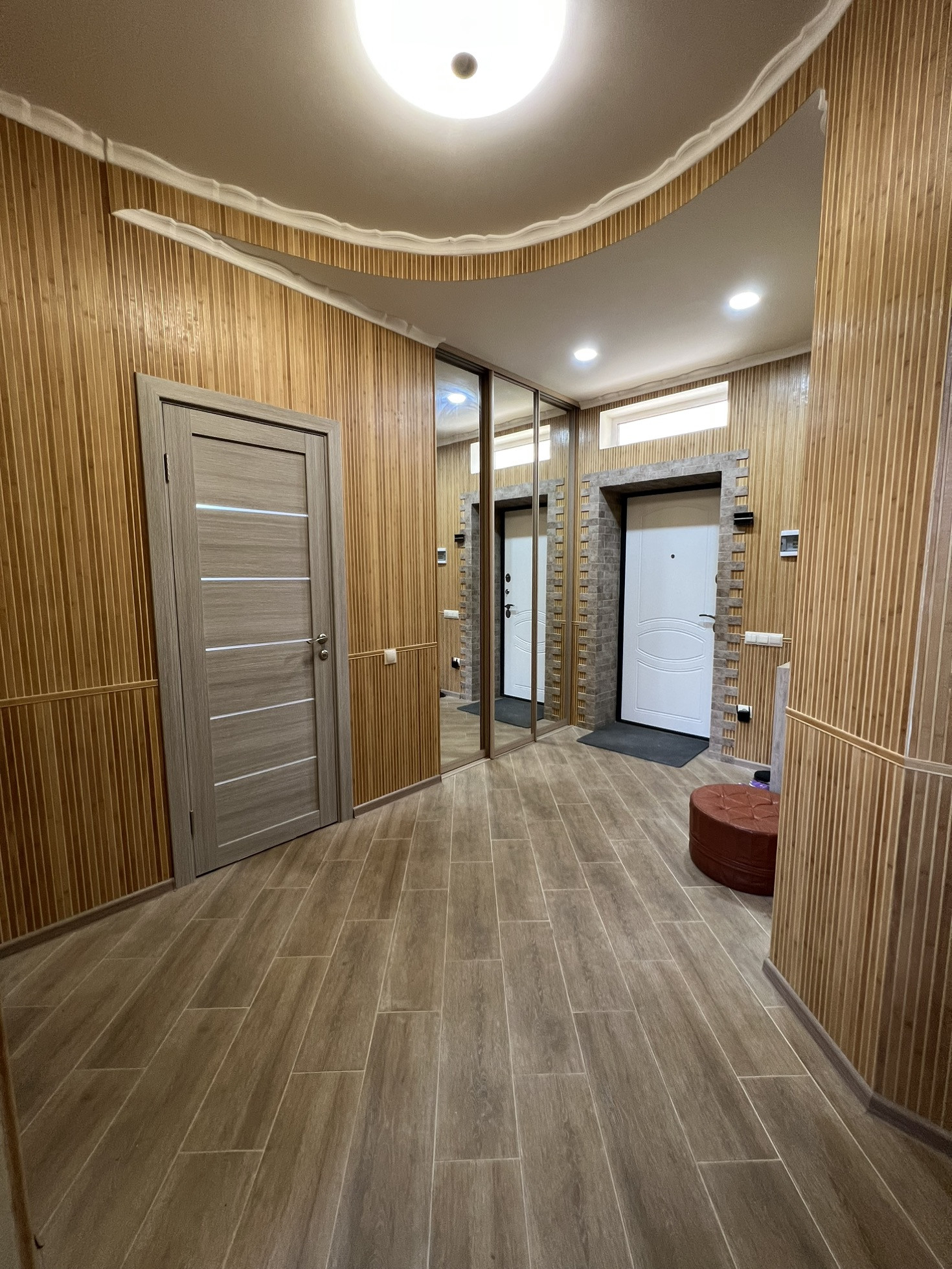 Дом полностью оштукатурен , как с внутренней стороны , так и с наружней .