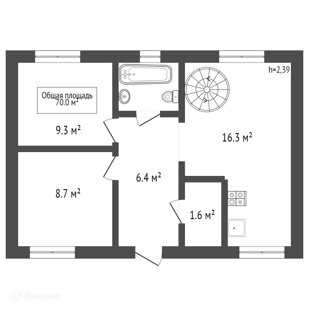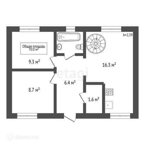 На втором этаже комната (16,7 кв.м.) и санузел.