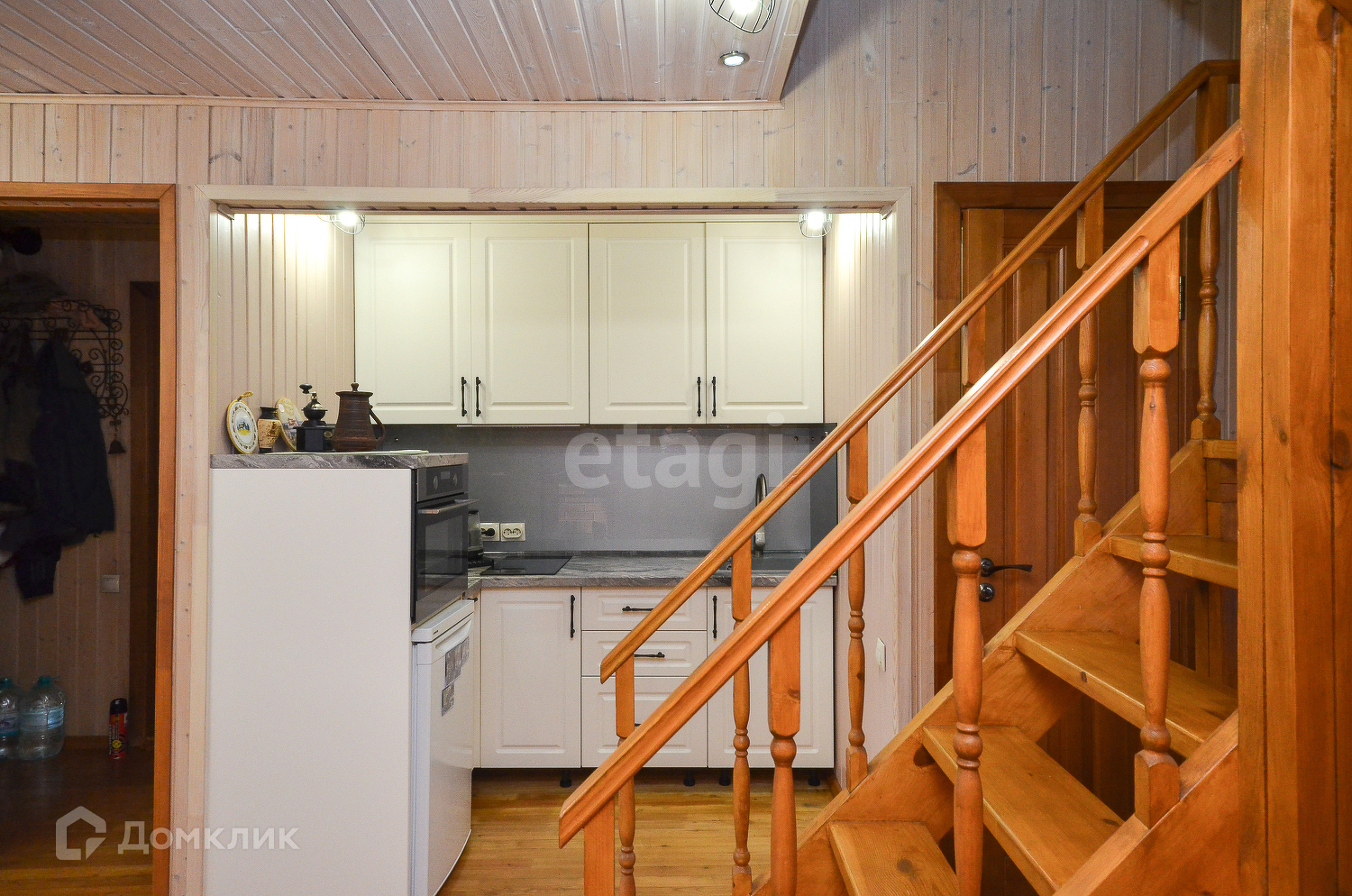 На первом этаже две спальни,кухня-гостиная с настоящим камином,санузел.