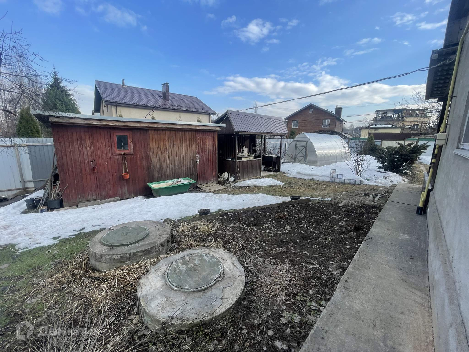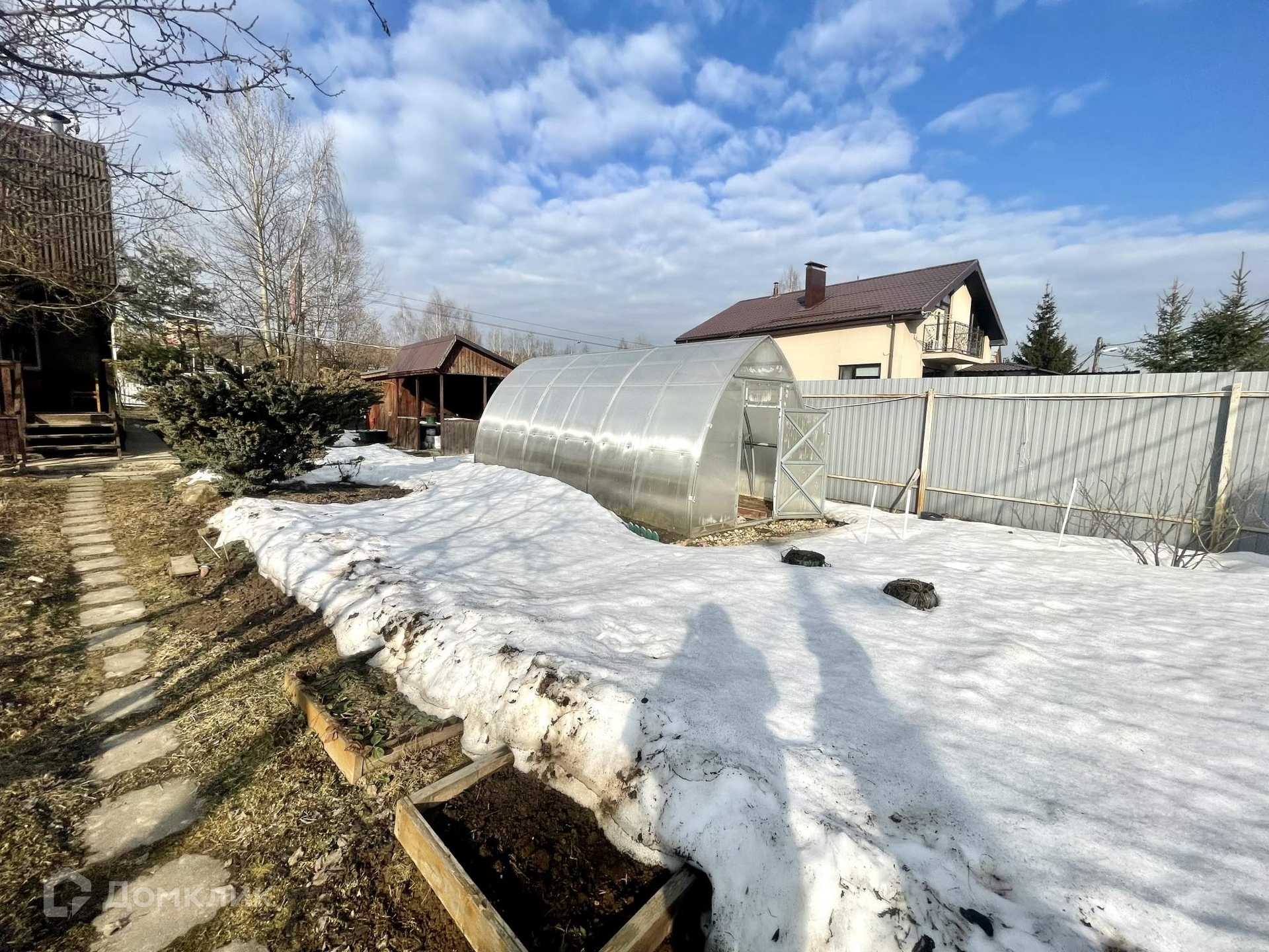 На территории участка беседка, теплица и сарай.