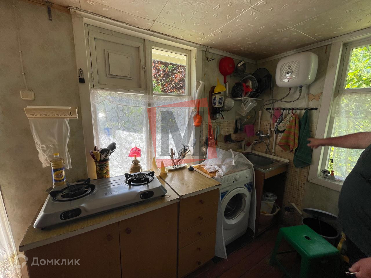 Еще одна капитальная постройка это летняя кухня. Подведена вода  и канализация. Есть стиральная машинка и еще один холодильник. Здесь же есть подсобное помещение .