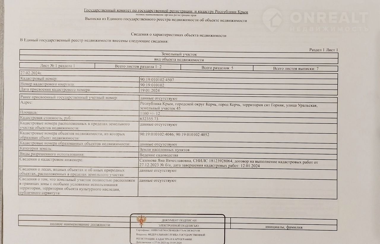 Кадастровый номер:90:19:010102:4506