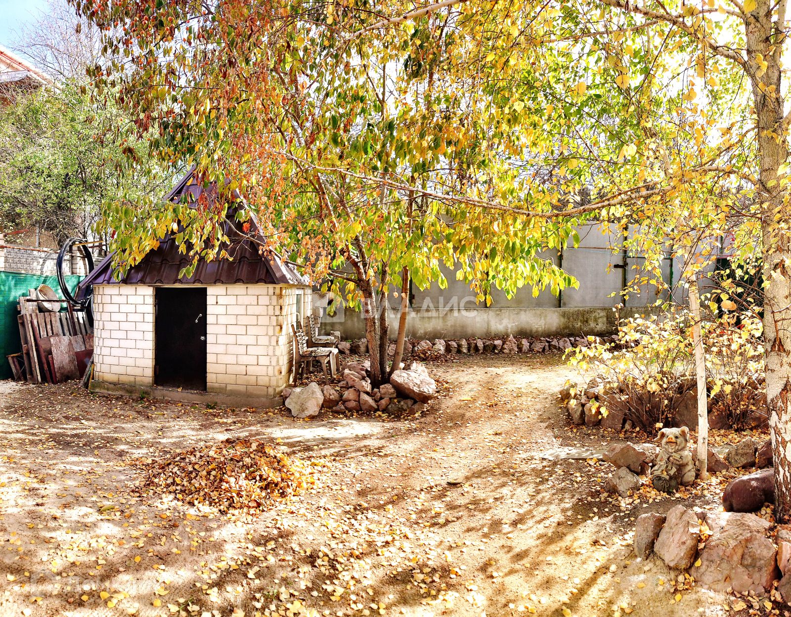 Во дворе имеется зоны отдыха, откатные ворота.