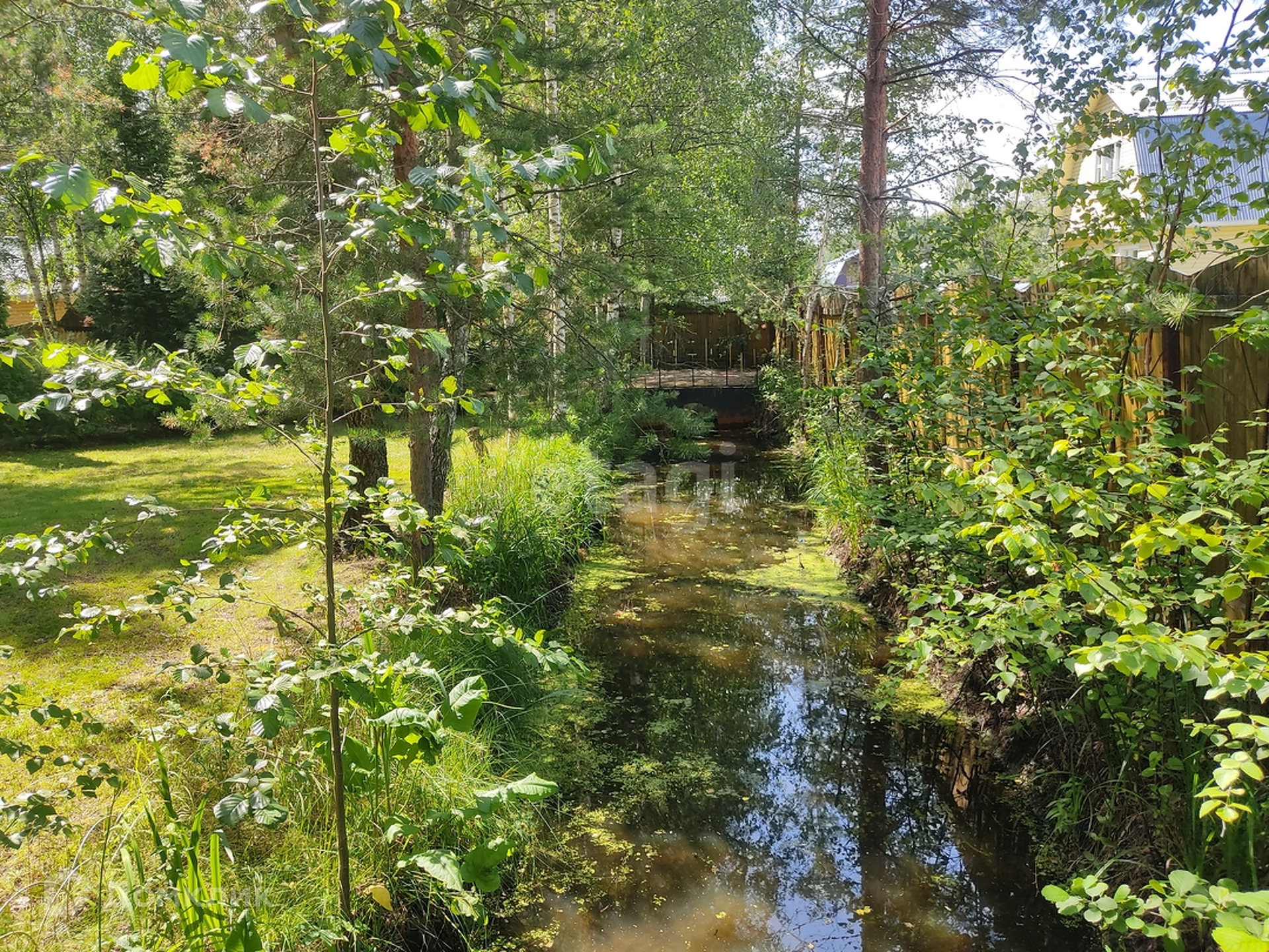 Участок имеет площадь 18 соток, он ровный и сухой, а также имеет правильную форму. На территории растут как лиственные, так и хвойные деревья, создавая комфортную и уютную атмосферу.