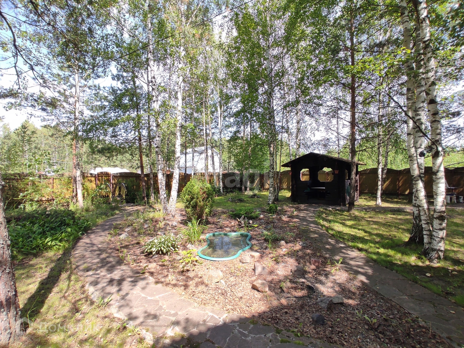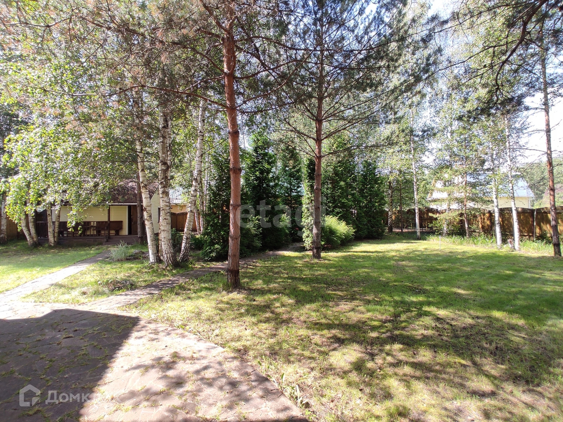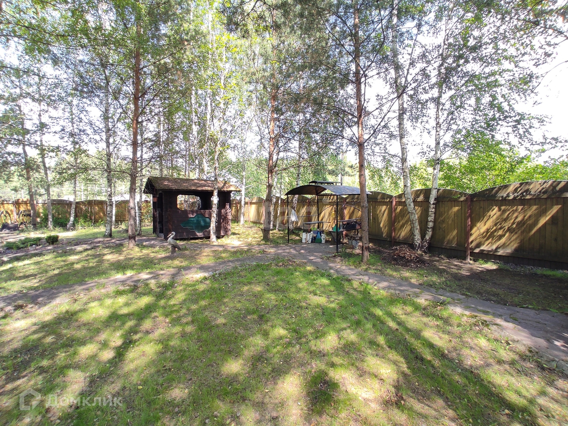 На территории есть дополнительные постройки: баня, летняя кухня, мангальная зона и беседка. Также, обустроена площадка для автомобиля.