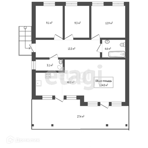 Общая площадь 124 м2