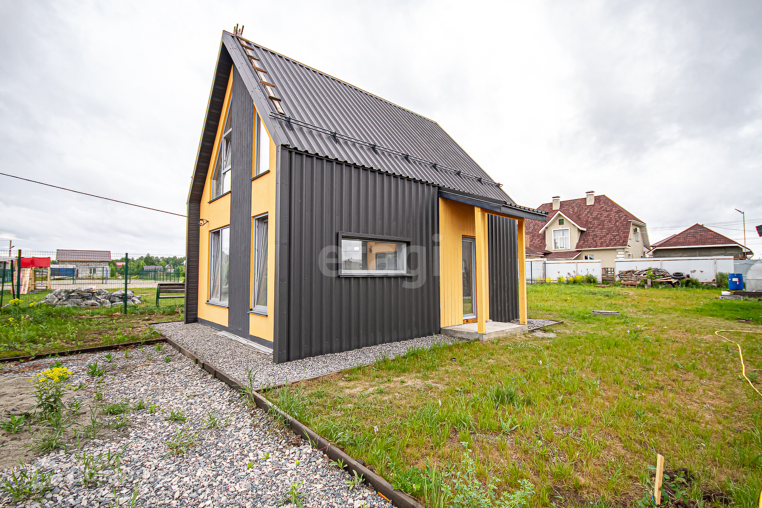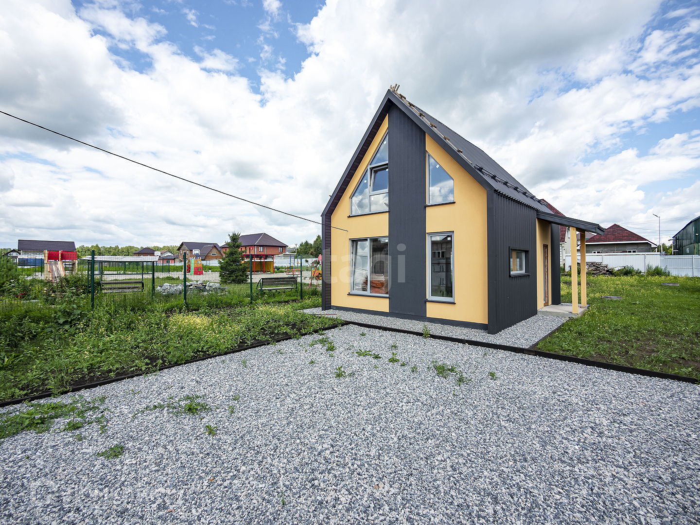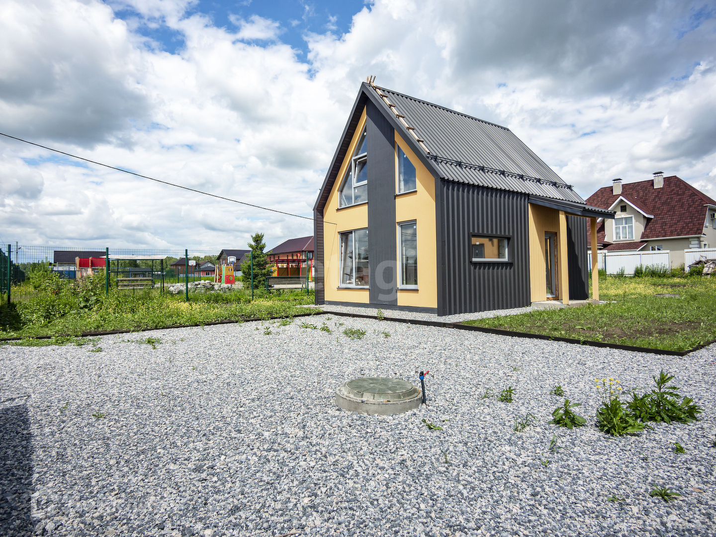Участок ровный, с газоном и парковочной зоной, в доме есть качественный электрокотел и заведен теплый пол.