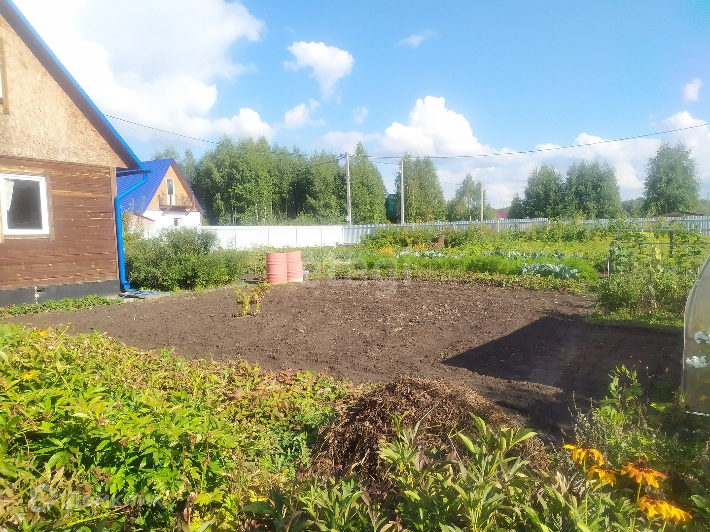 Участок большой 12 соток, ровный. Отличный, ухоженный огород, есть все посадки(елочки, яблоньки, клубника) теплица. Качественно построенная баня тоже из бруса. Вокруг все соседи живут круглогодично.