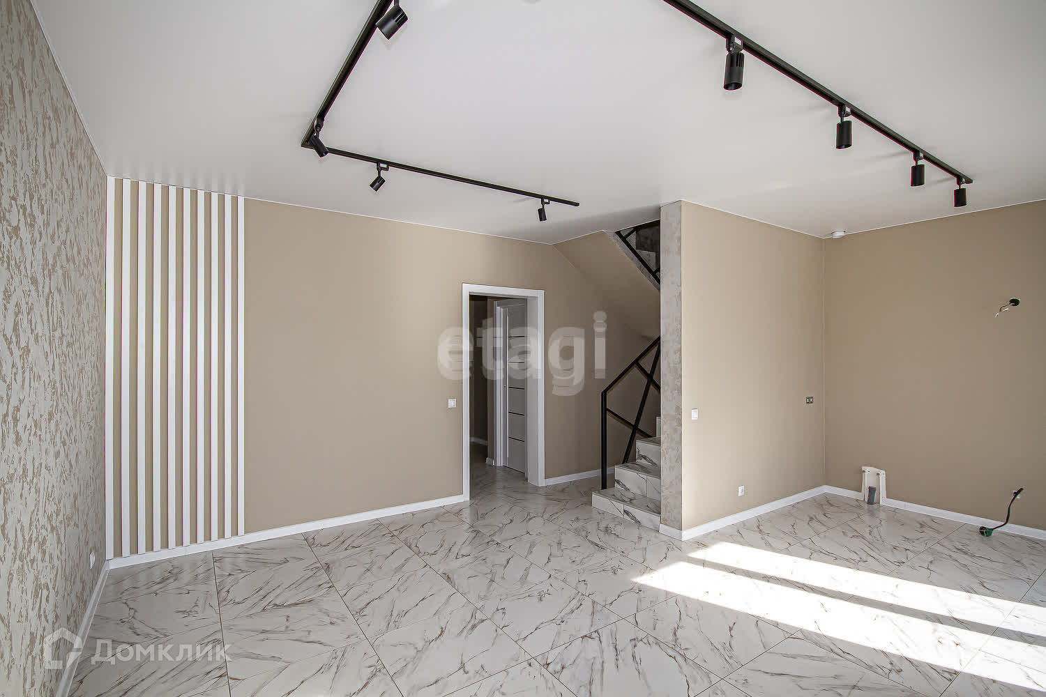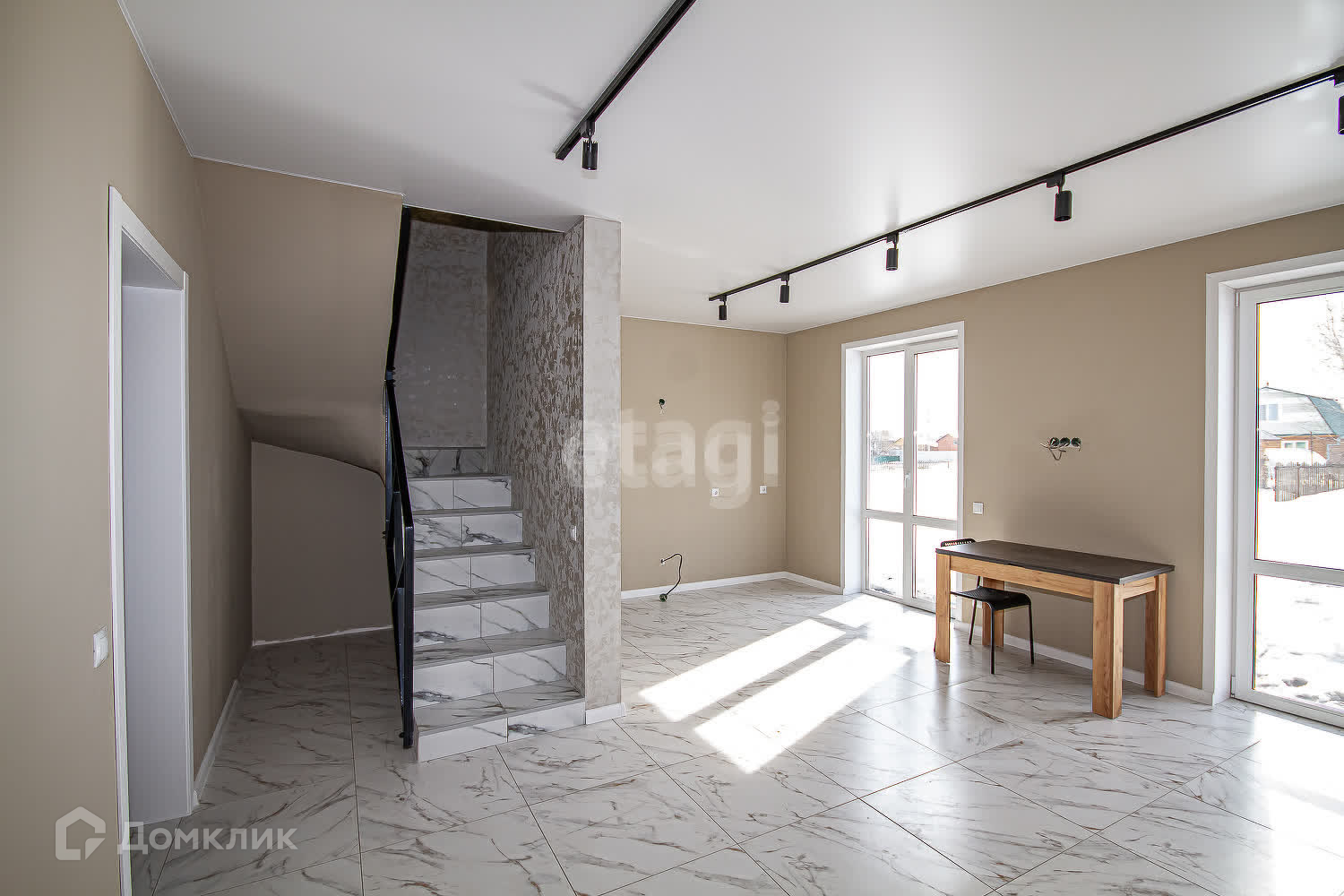 Ремонт включает в себя: керамогранит пол-1 этаж, керамическая плитка в санузлах, ламинат-2 этаж, натяжные потолки! Стены готовы под финишное покрытие!