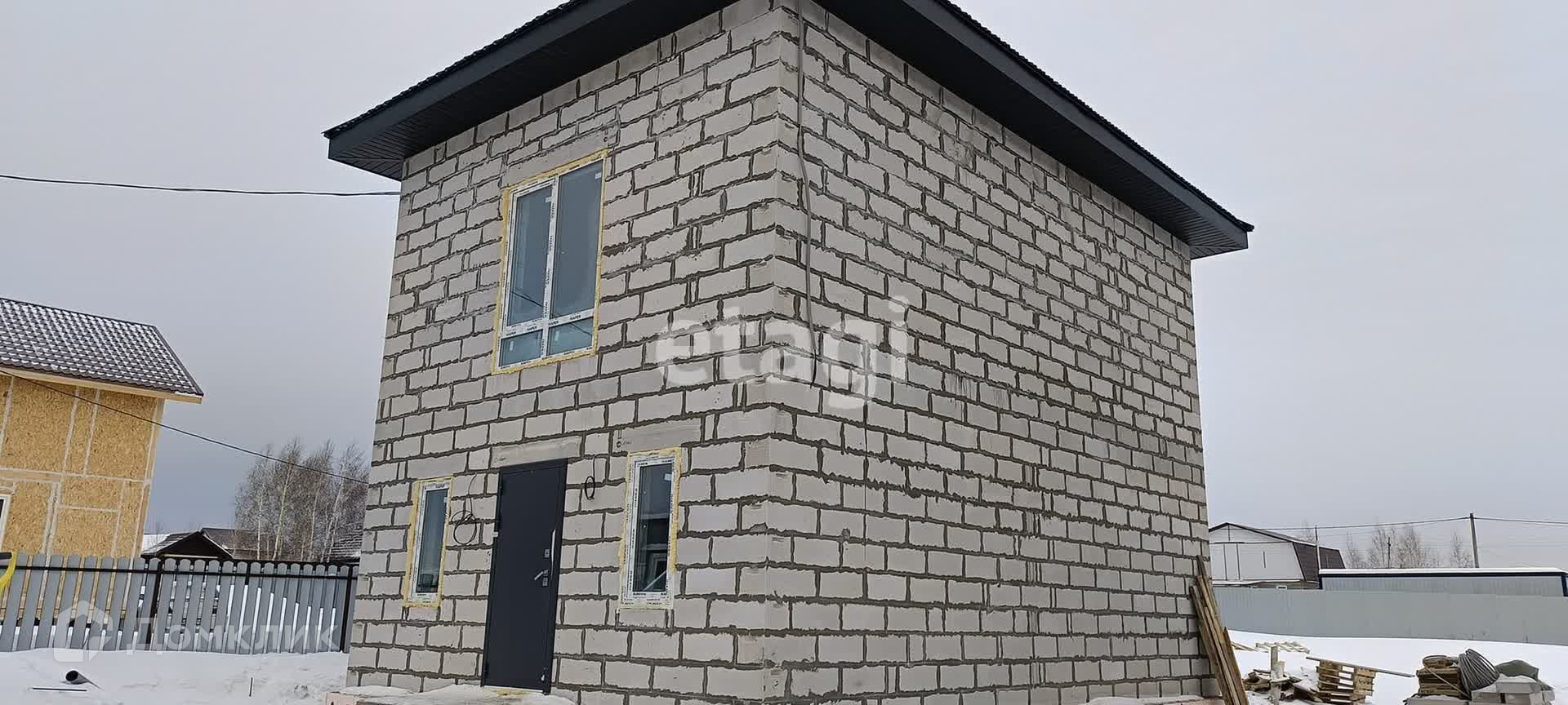 Дом построен из газобетона Сибит 300мм, самый надежный свайно-ростверковый ФУНДАМЕНТ, железобетонные перекрытия, лестница, четырехскатная кровля металлочерепица цвета графит,отличные 5-ти камерные окна, КАЧЕСТВЕННАЯ входная дверь с терморазрывом графит.