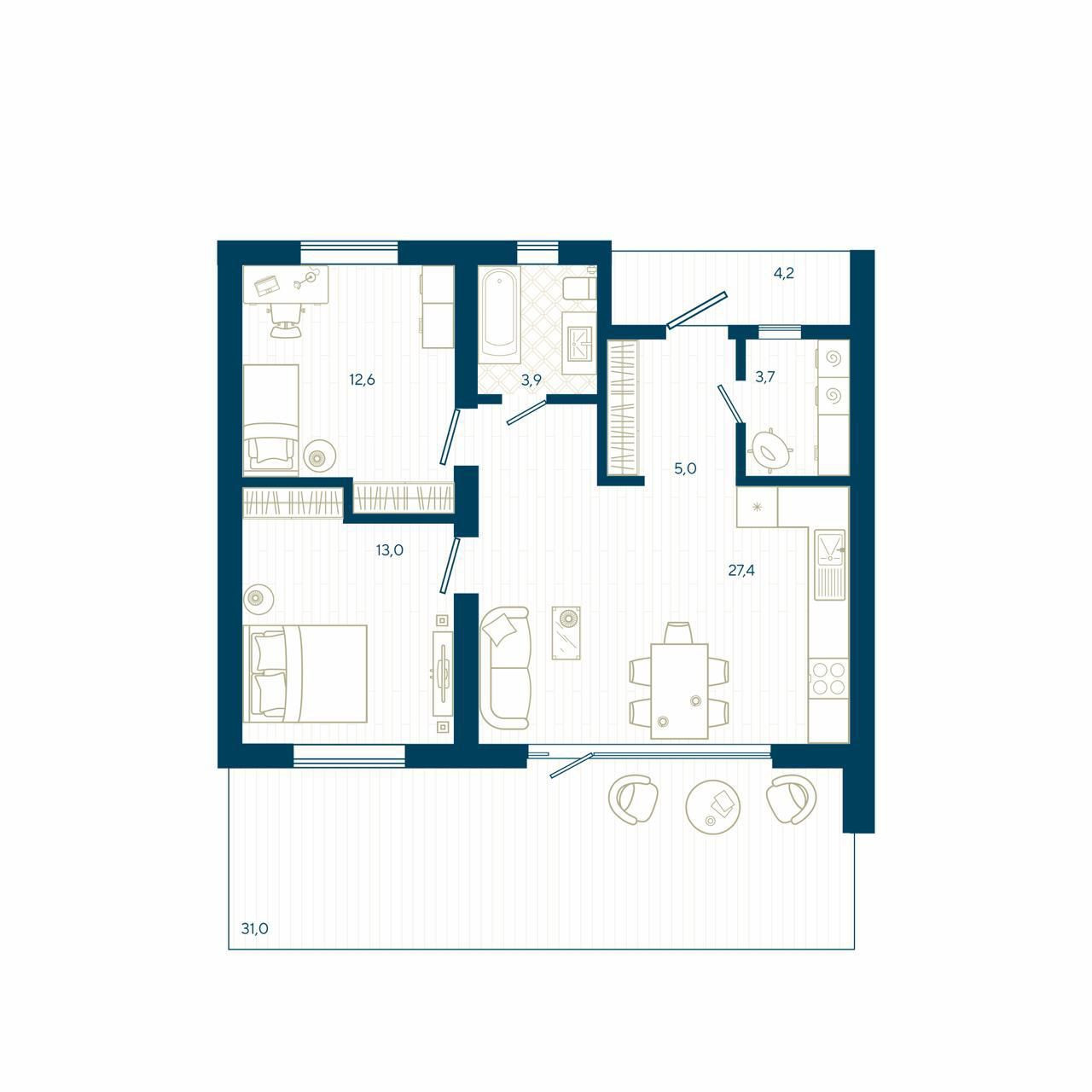 Жилая площадь 67 м2