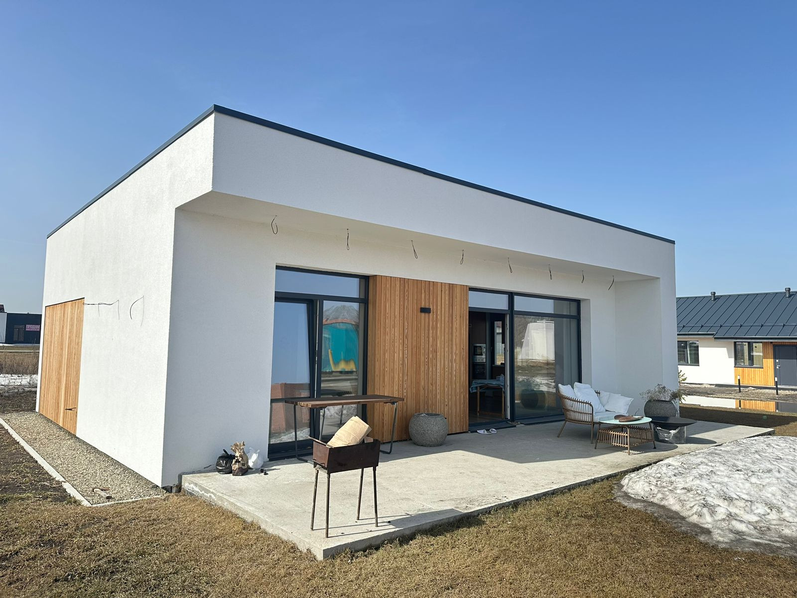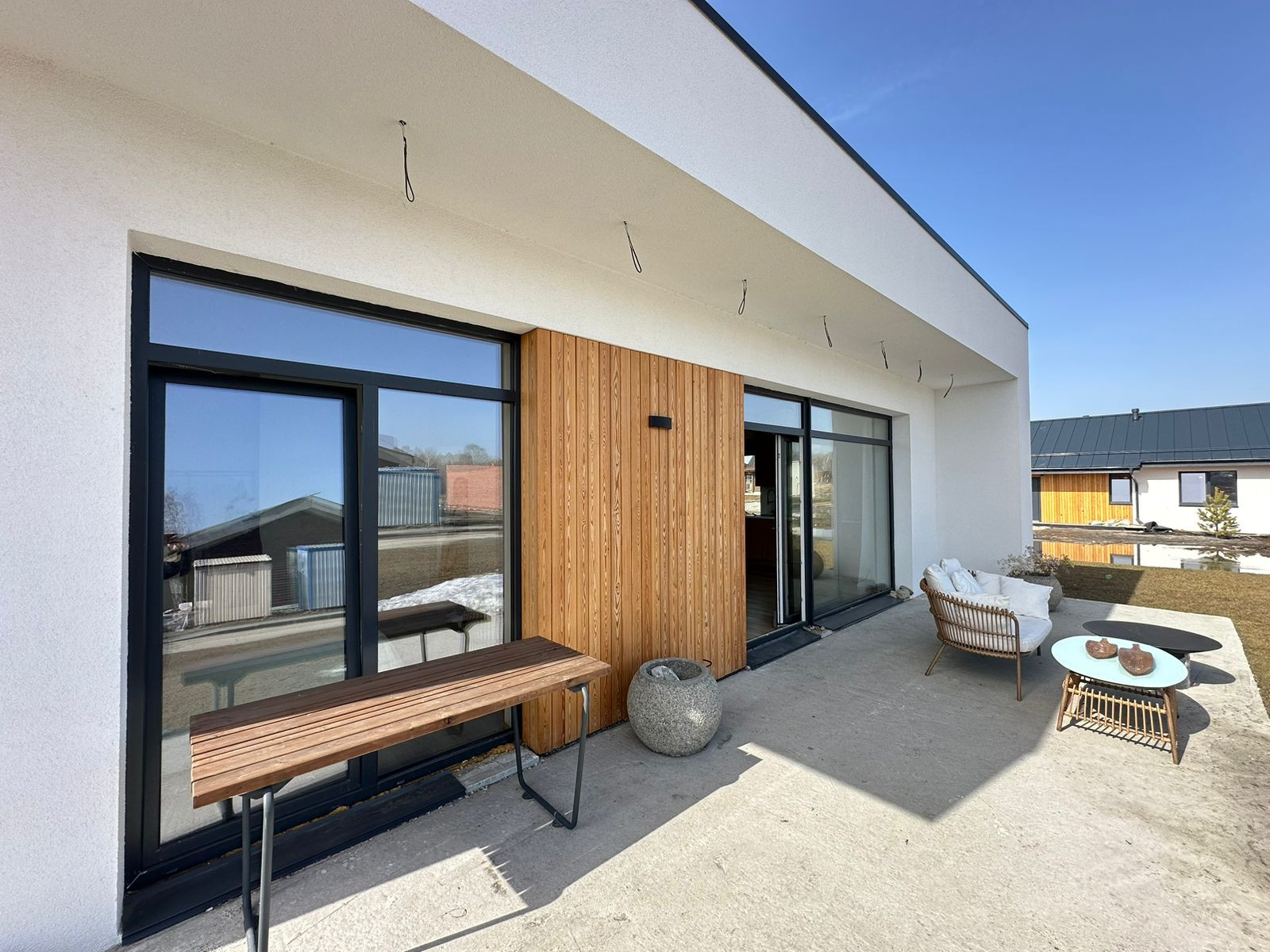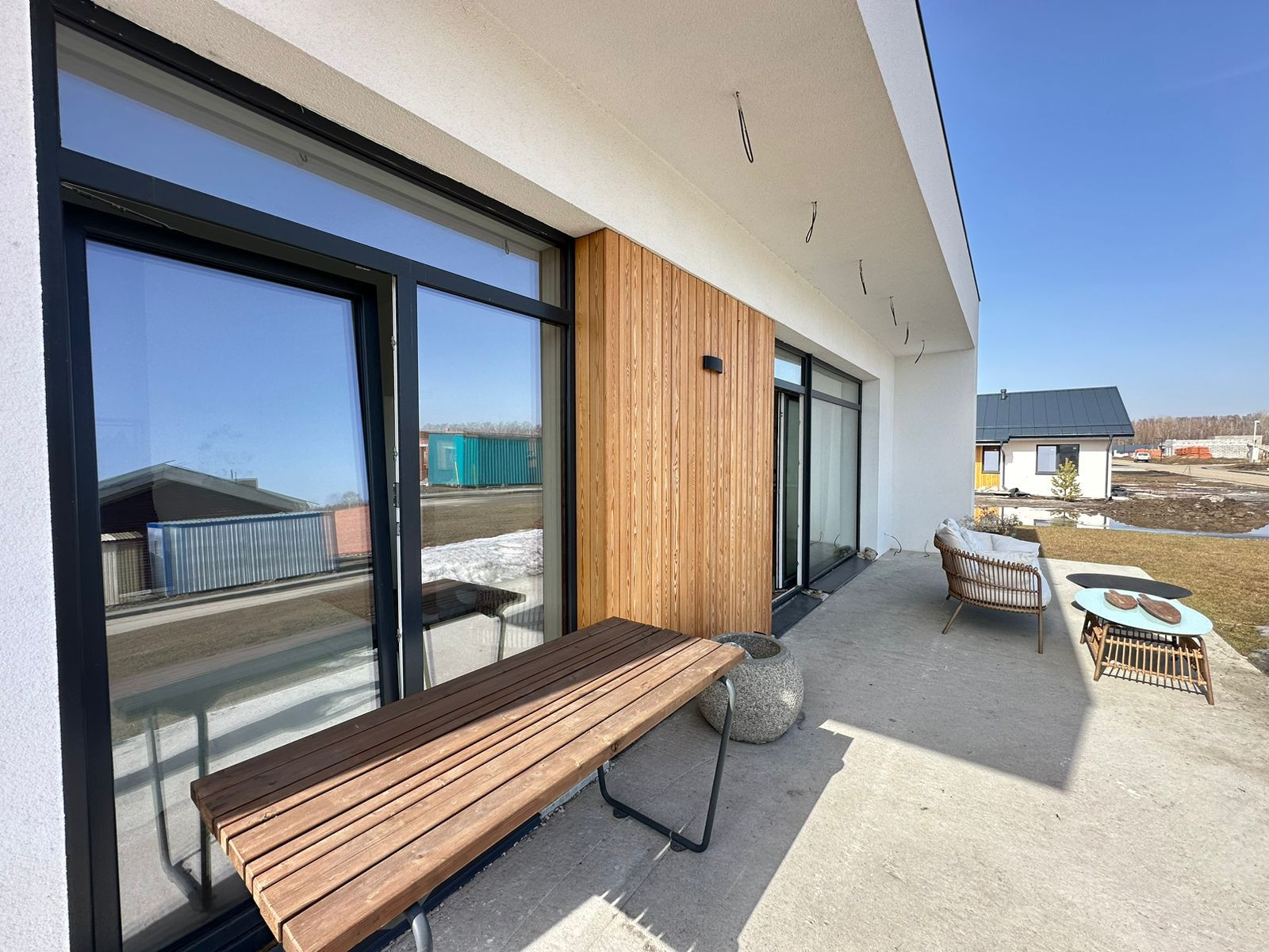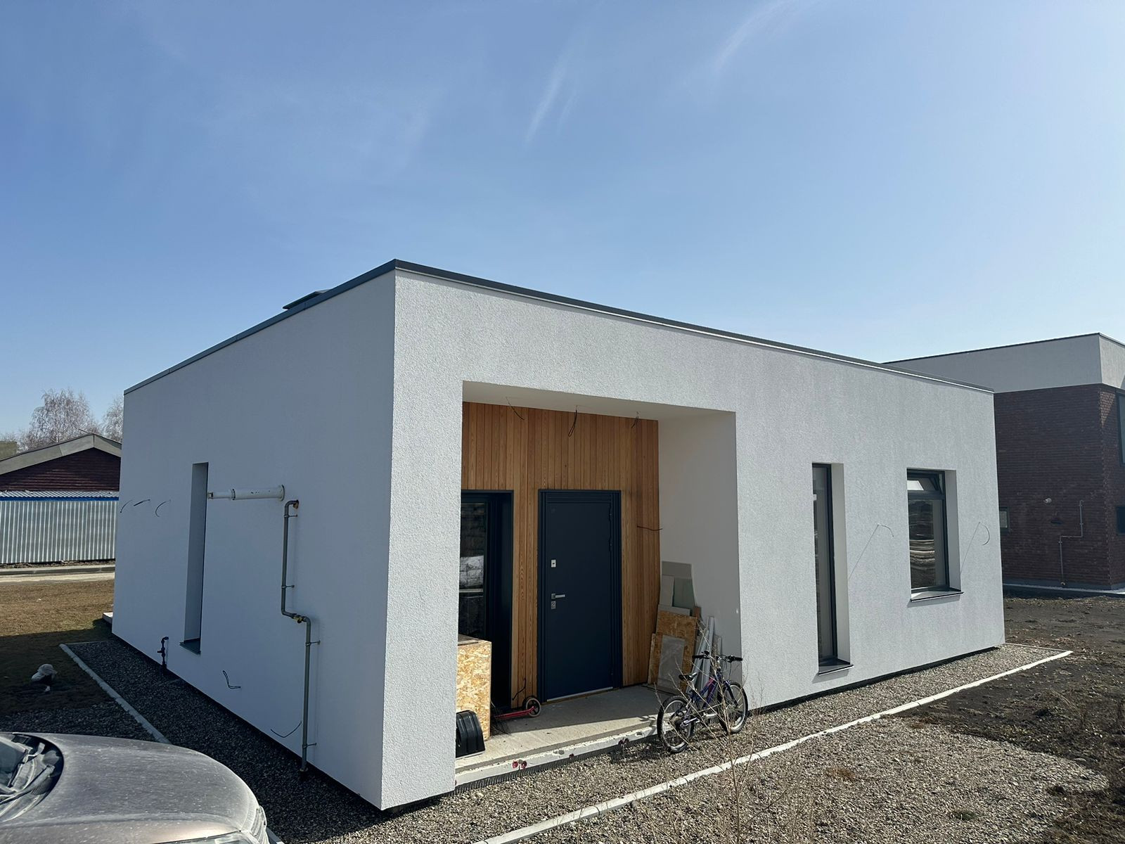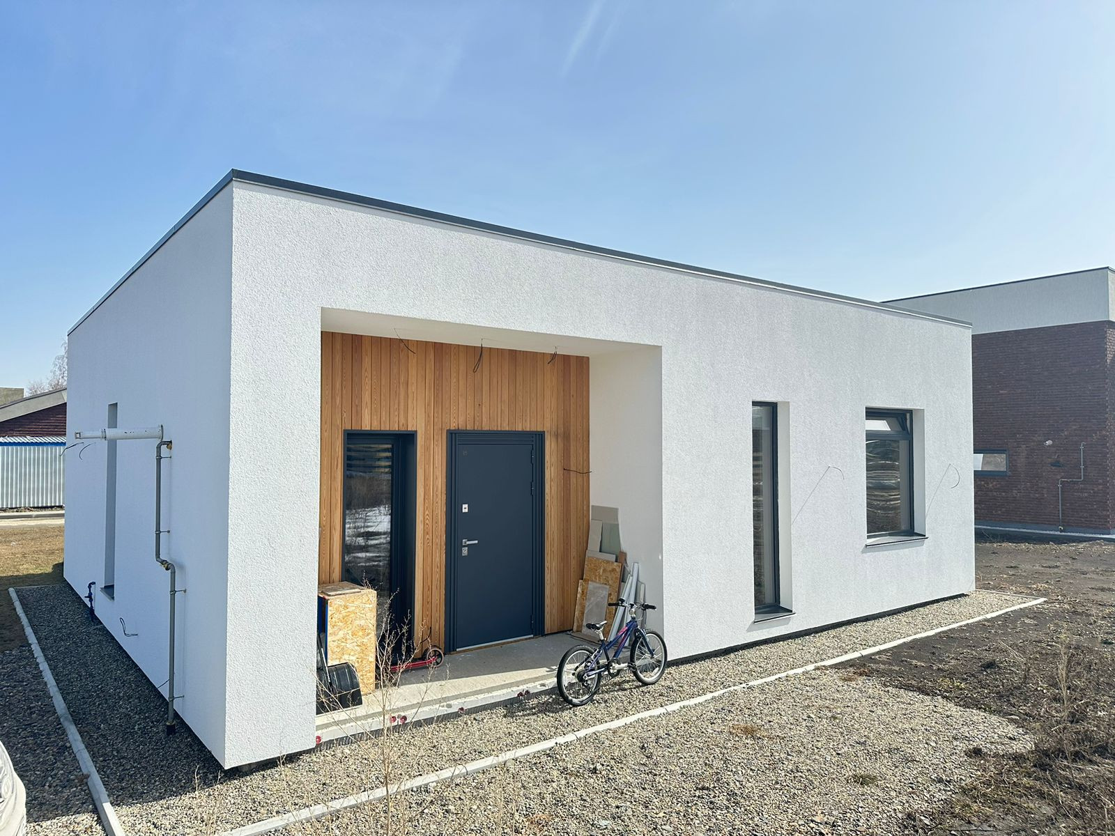 • Стены: 250 мм кирпич керамический полнотелый ЗСМ7, фасадный утеплитель 150 мм, штукатурный фасад Ceresit; планкен;
