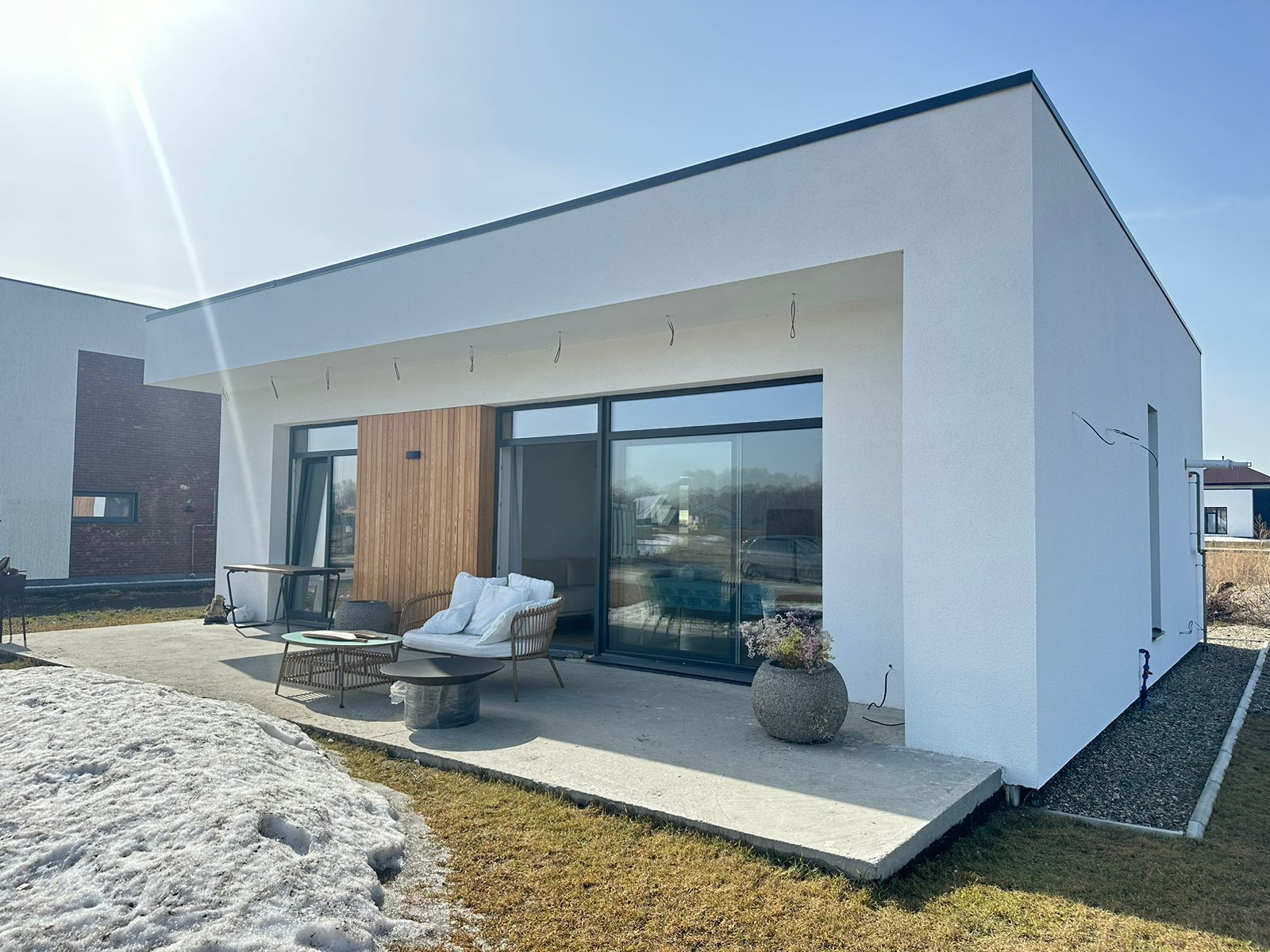 Компактный кирпичный проект дома 101 м2 с террасой (67 внутренняя + терраса)