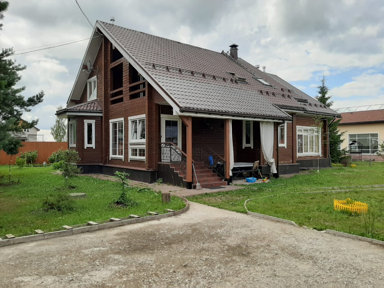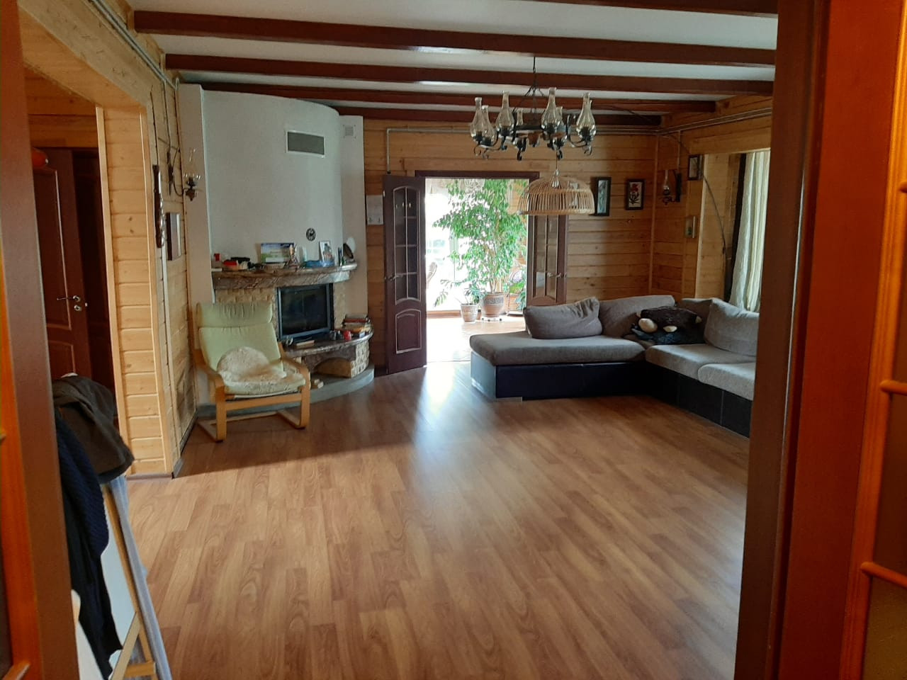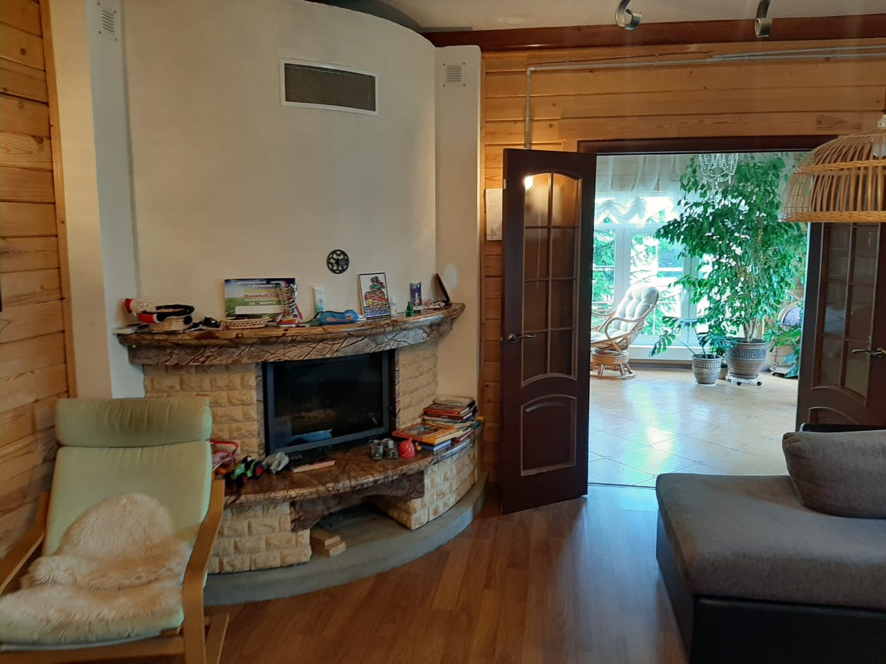 Дом 2 эт. Из бруса общей площадью 240 м2.1 Этаж- большая кухня-столовая, гостиная с камином, прихожая, гардеробная, зимний сад с теплым полом. 2 этаж-3 спальни и детская комната.