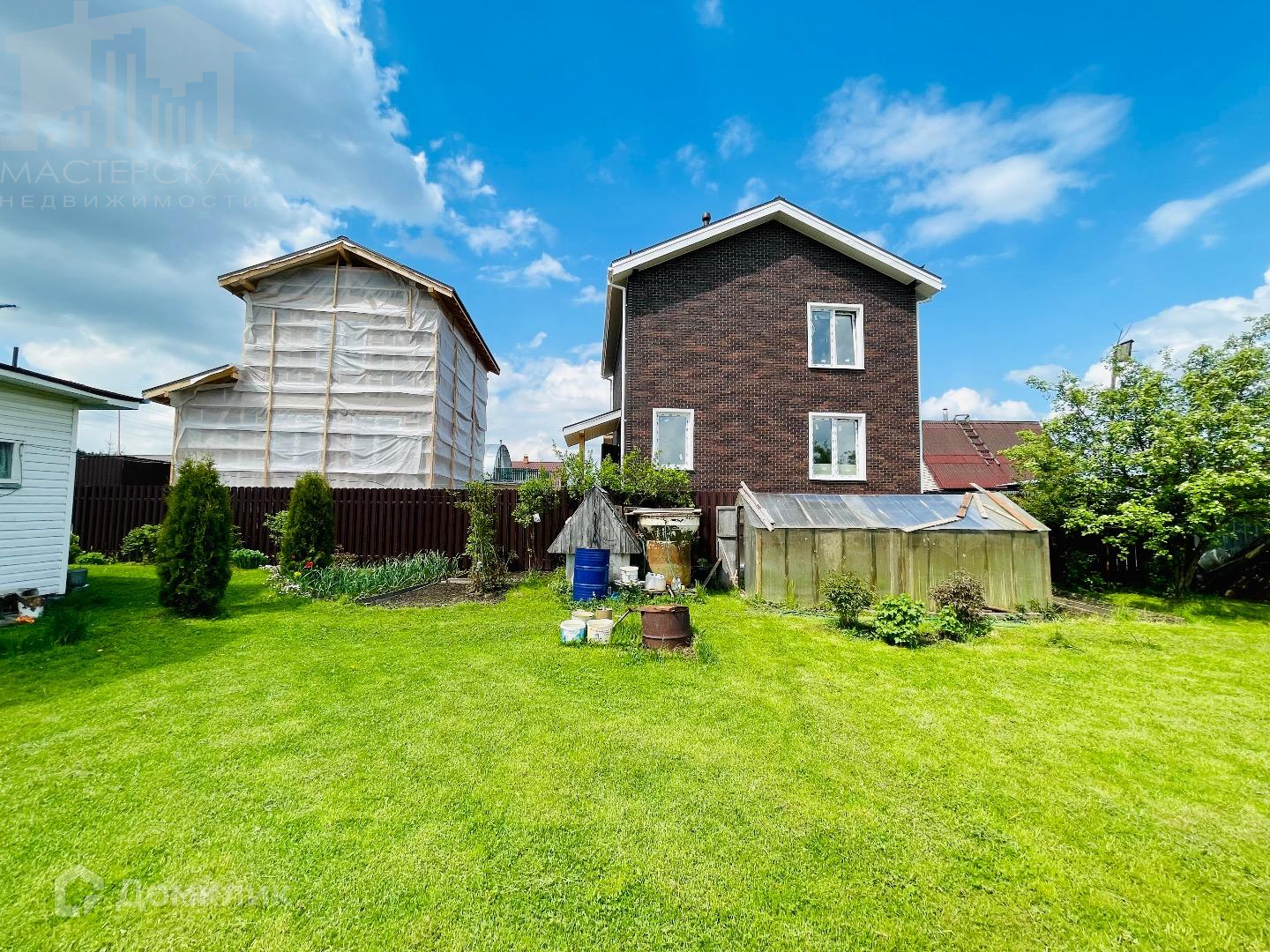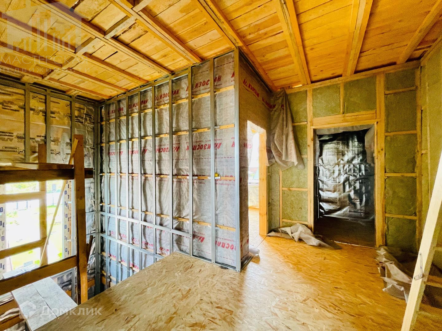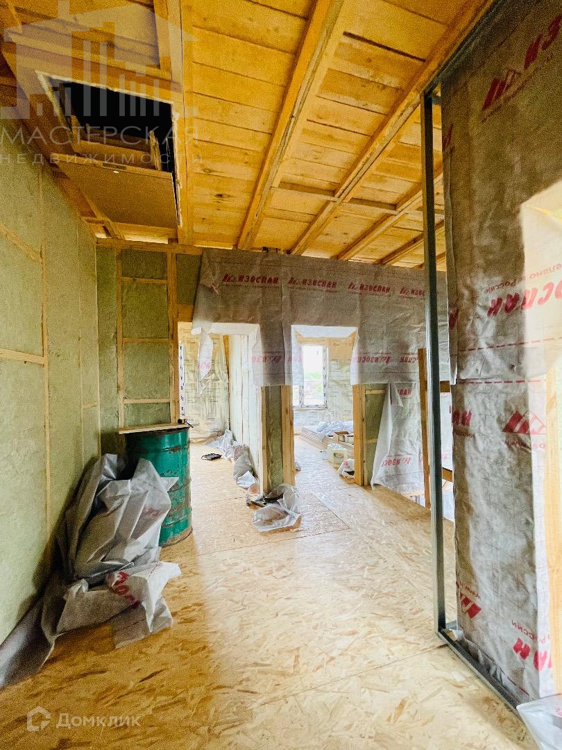 Первый дом 156.3кв.м. Оформлен как жилой! На первом этаже спальня, кухня-гостиная с выходом на террасу, СУР, котельная; Второй этаж 3 отдельные спальни, второй СУР, лестница на мансарду. Перекрестное утепление наружных стен и крыши 200мм, что исключит мостки холода, Влаго-ветро защита TYVEK, пароизоляция Технониколь 4,0. Фасад обшит панелью под декоративный камень. Сделана шумоизоляция полов второго этажа, куплен гипсокартон для внутренней отделки, с расчетом в два слоя. Частично начат монтаж металлоконструкции и электропроводки.