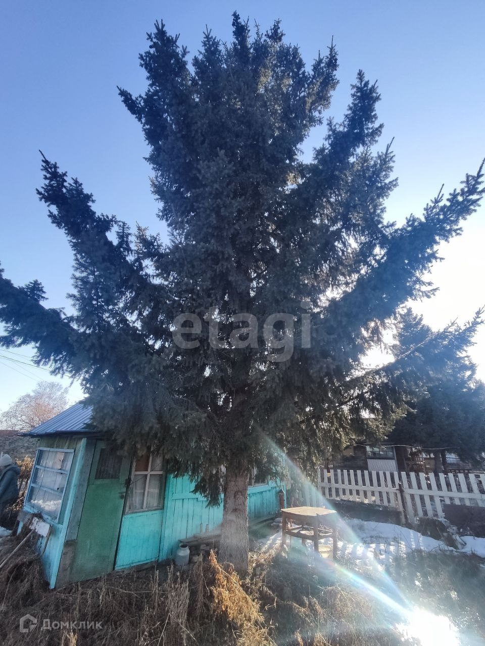 Земля хорошая, плодородная. Из посадок есть яблоня, вишня, малина и большая ёлка.