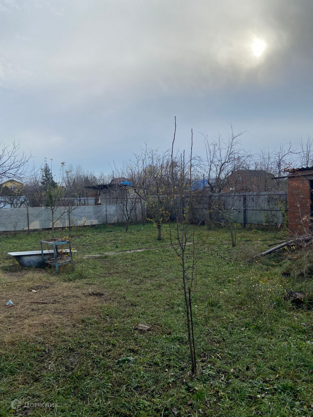 Продаётся ровный, огороженный забором земельный участок с плодоносящими деревьями.