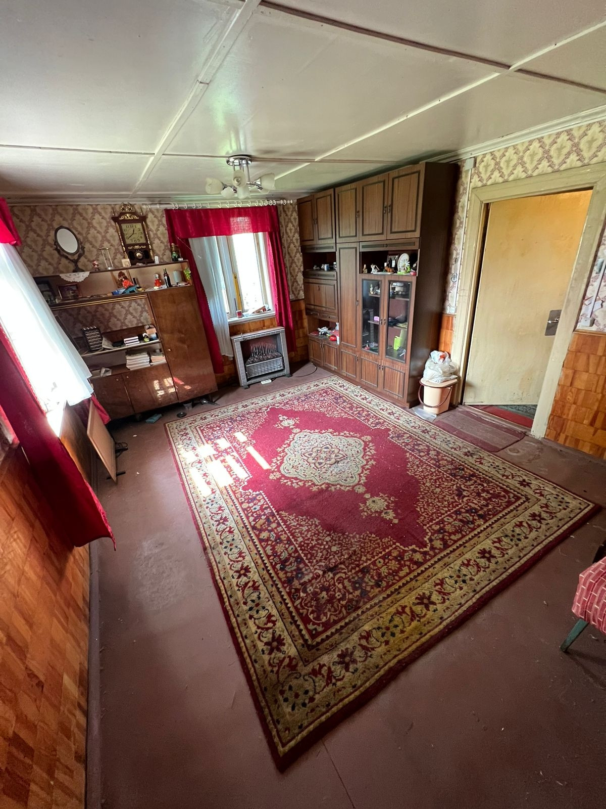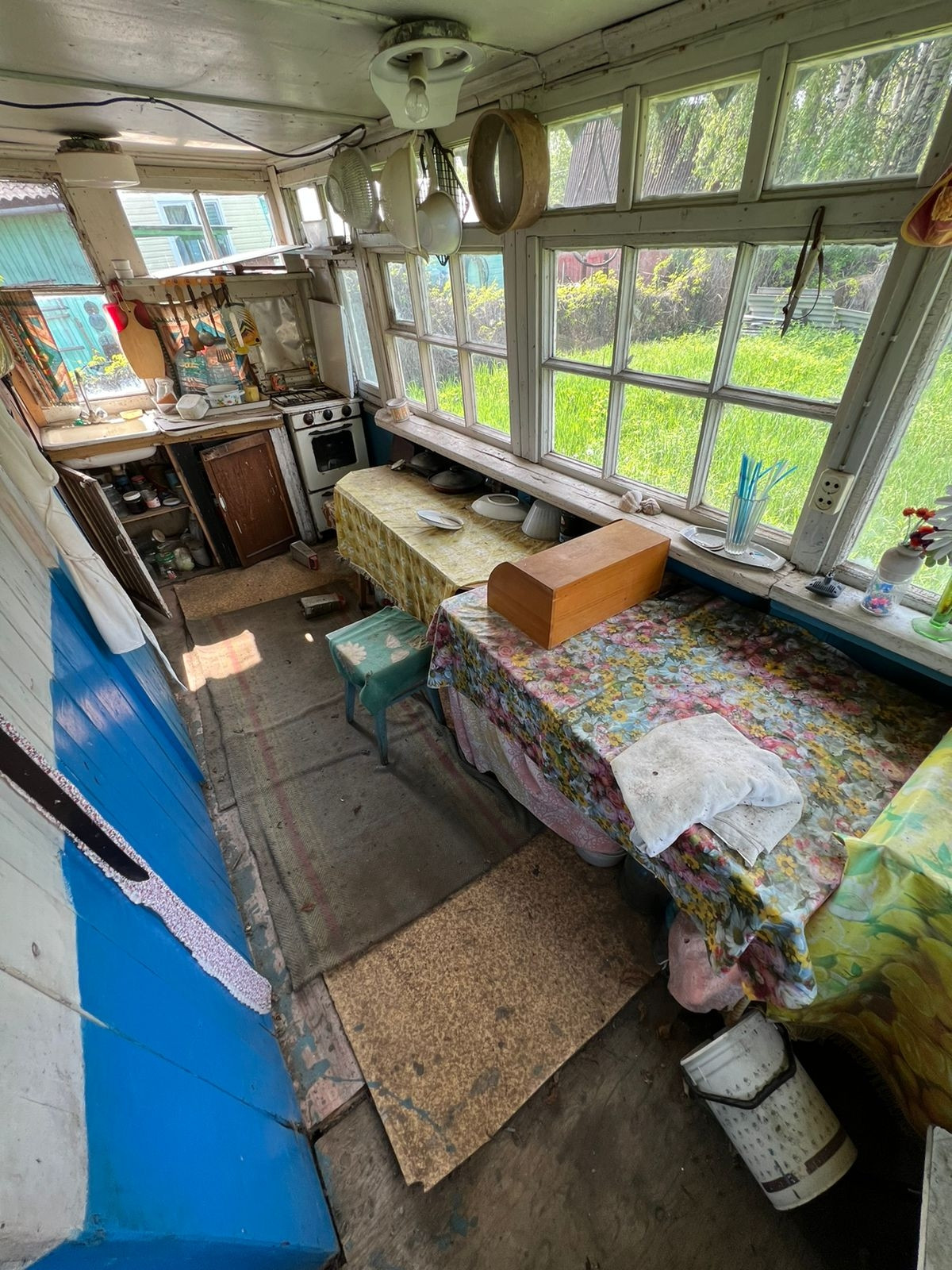 Электричество разведено по всему дому.             На первом этаже: две комнаты; на втором этаже: одна большая комната .                                              Большая летняя кухня с условиями внутри: вода заведена, раковина для мытья посуды , газовая плита (газ балон), душевая. Отопление печное.
