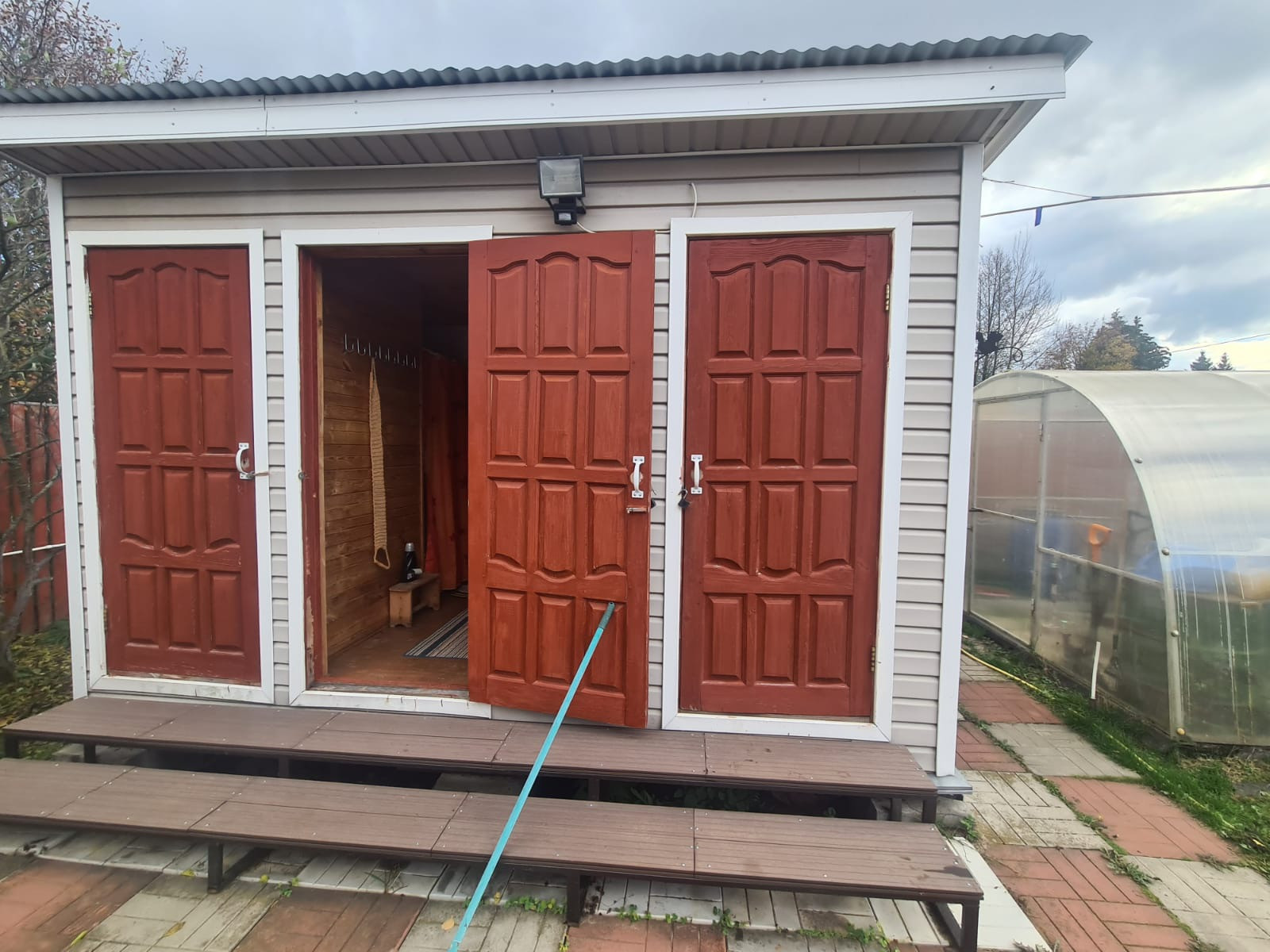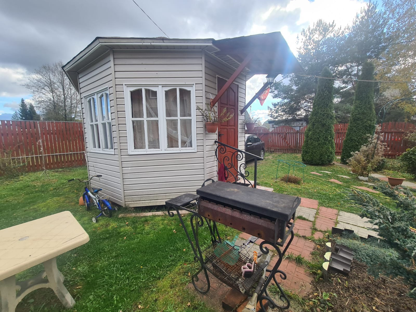 На участке есть, беседка с обеденной зоной(вода подведена), Хоз. блок с туалетом и душем.