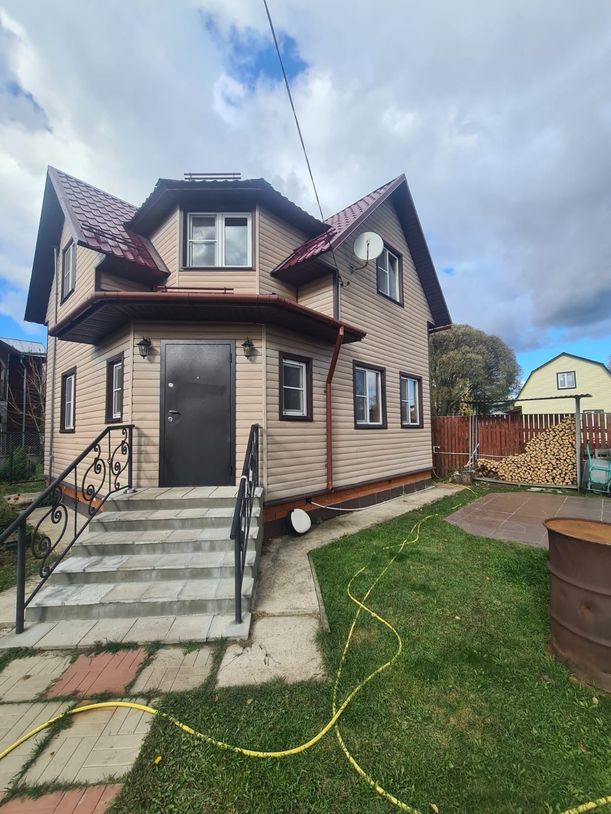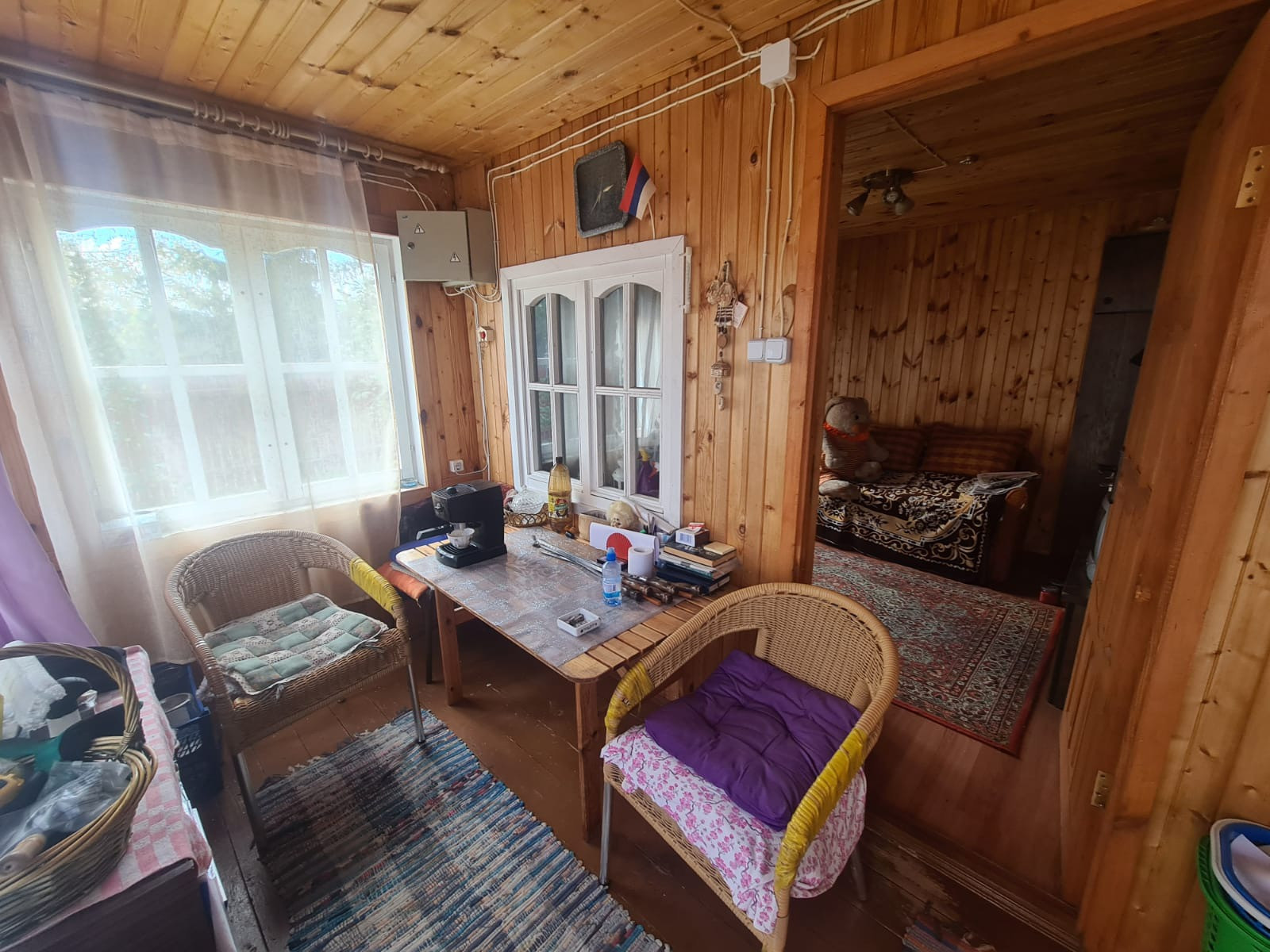 Дача находится в охраняемом СНТ, на участке 2 дома, основной и летний, Основной дом 2-х этажный 110 кв.м, брусовой, фундамент ленточный, сайдинг Блок Хаус, Утепленный, крыша Металлочерепица, Септик 4 секции. Электричество 7 кв. Планируется газ. ( идет оформление) Отопление твердо-топливный котел,С\У и Душ в доме. Вода в дом заведена.
