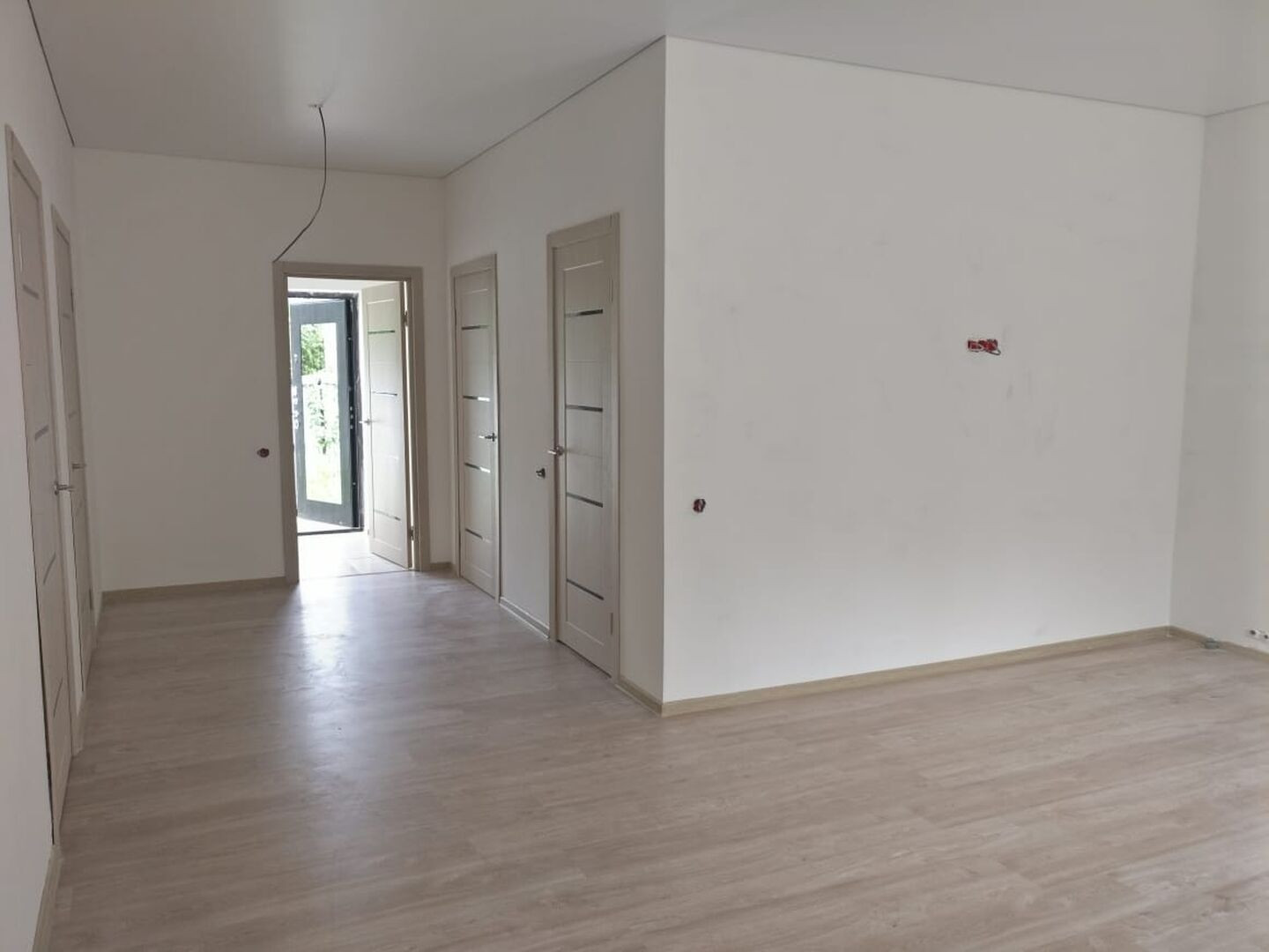 Продам дом: 3 комнаты (по 13,5; 11,5; 10,5 кв.м.), кухня-гостиная 30 кв.м., с выходом в сад. Удобная планировка для большой семьи. Материал- пеноблок+утеплитель+штукатурка "Короед". Отопление: разводка теплых полов (прихожая, зона кухни, с\у) + радиаторы отопления. Водоснабжение: скважина 30 м. Канализация: септик (бетонные кольца). Электричество - по запросу. Дом продается с ремонтом в который входит: ламинат, потолки натяжные, окна МП, двери межкомнатные МДФ, электроразводка под телевизоры и кондиционеры, розетки и эл.плиту. Крыша, ограждение - профлист. Ворота - откатные. Место под машину забетонировано. З\у 4 сот. За более подробной информацией - звоните.